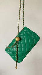 CC 25 classic flap bag 20 mini gold ball mint green calfskin