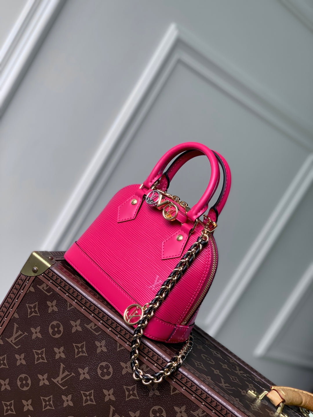 LV Alma Monogram Bag 19.5cm Rose Red Epi Leather 337570