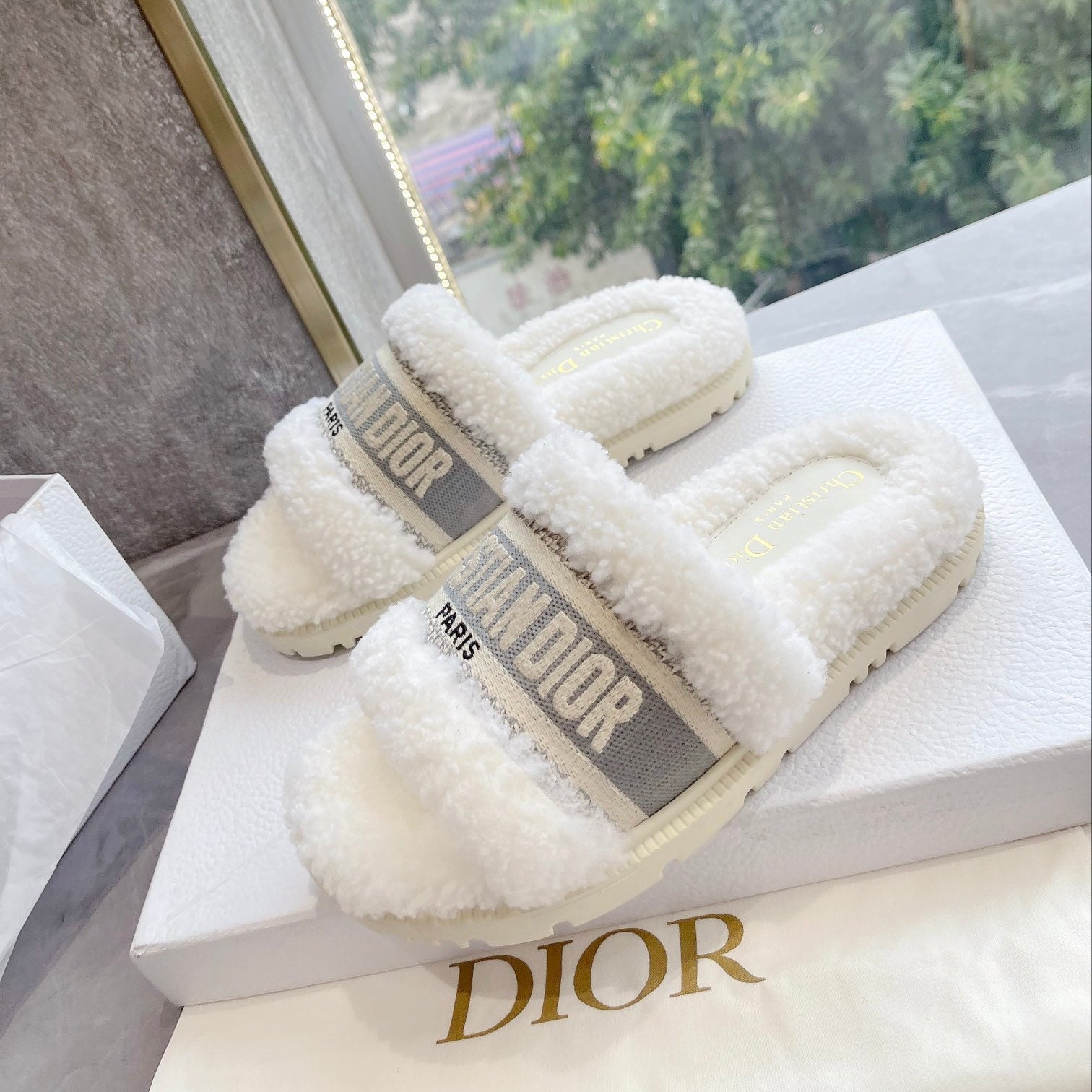 CD 25 Flat Slippers White Gray Wool 395564
