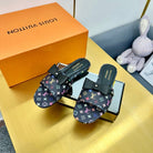 LV 25C LV x TM 6AM Flat Mule Black Bow Black with Monogram Multicolore Leather 219950
