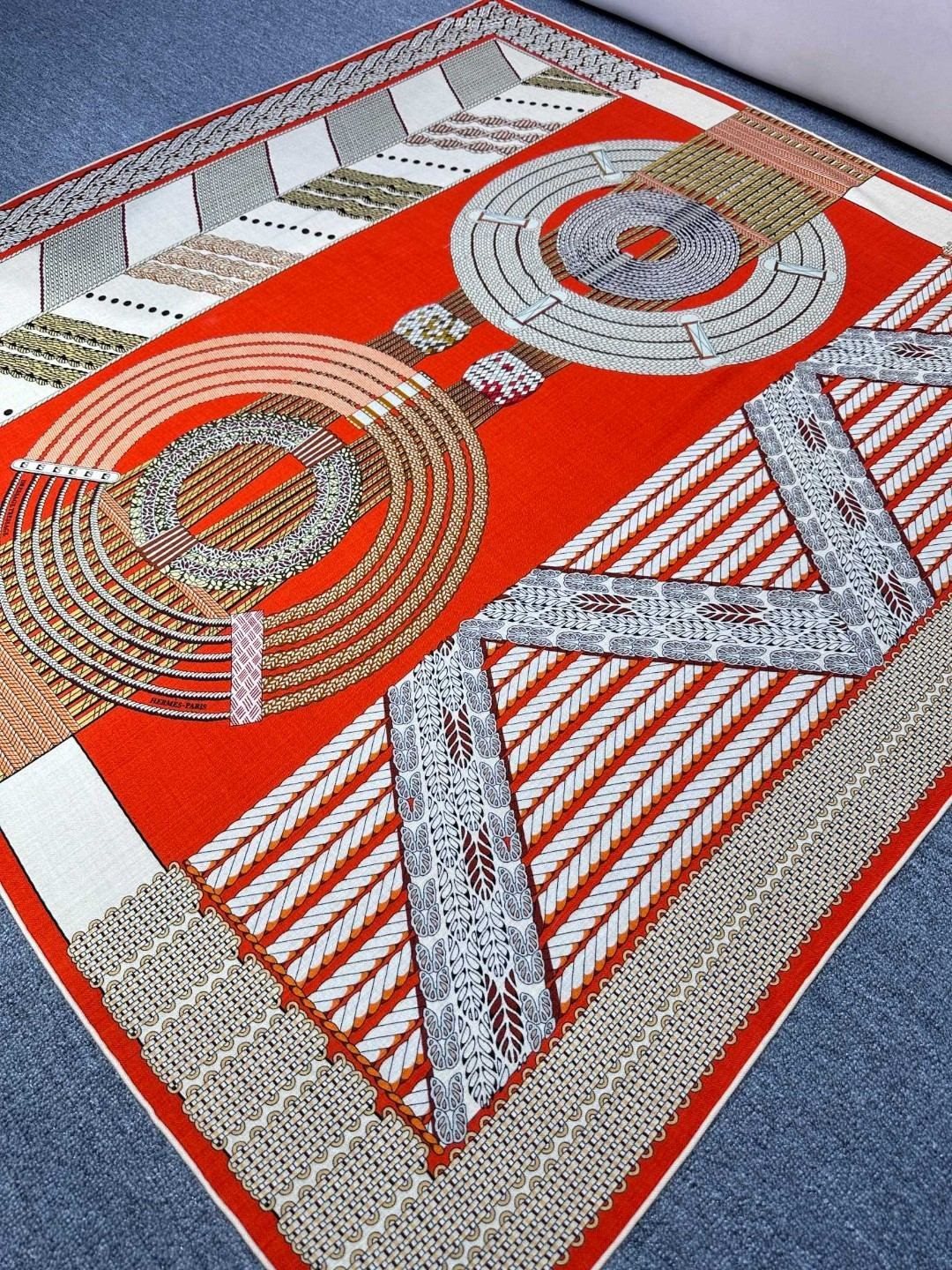 Dressage Tressage Shawl 140 CM In Orange Red Colorful Silk