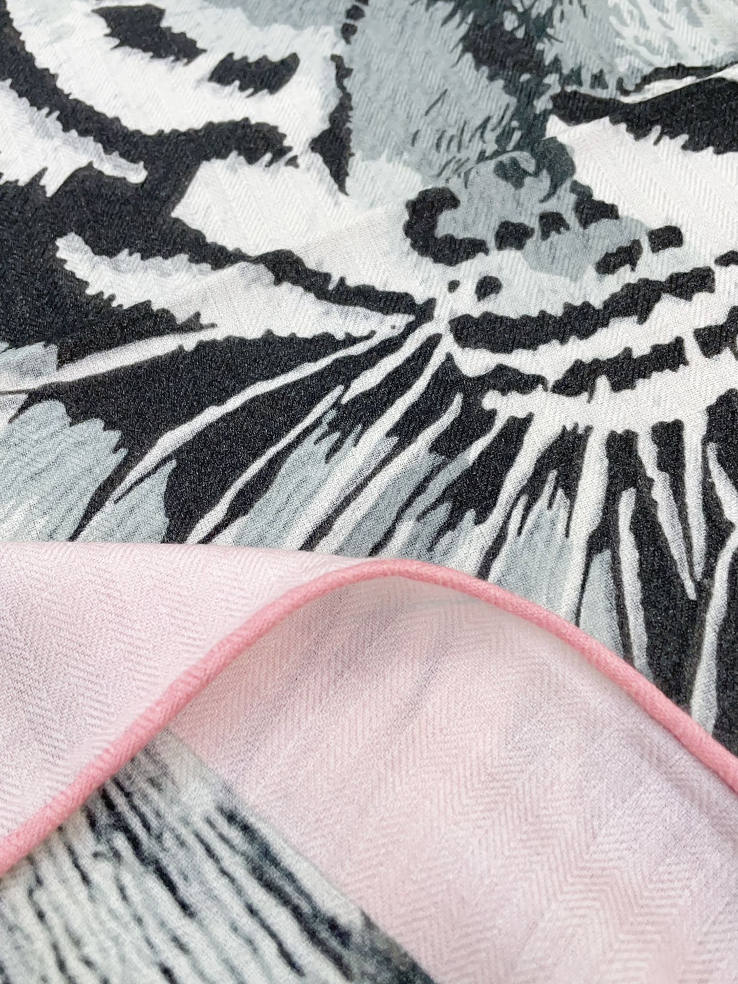 Tigre Royal Double Face Scarf 140 CM In Orange Colorful Cashmere And Silk 254646