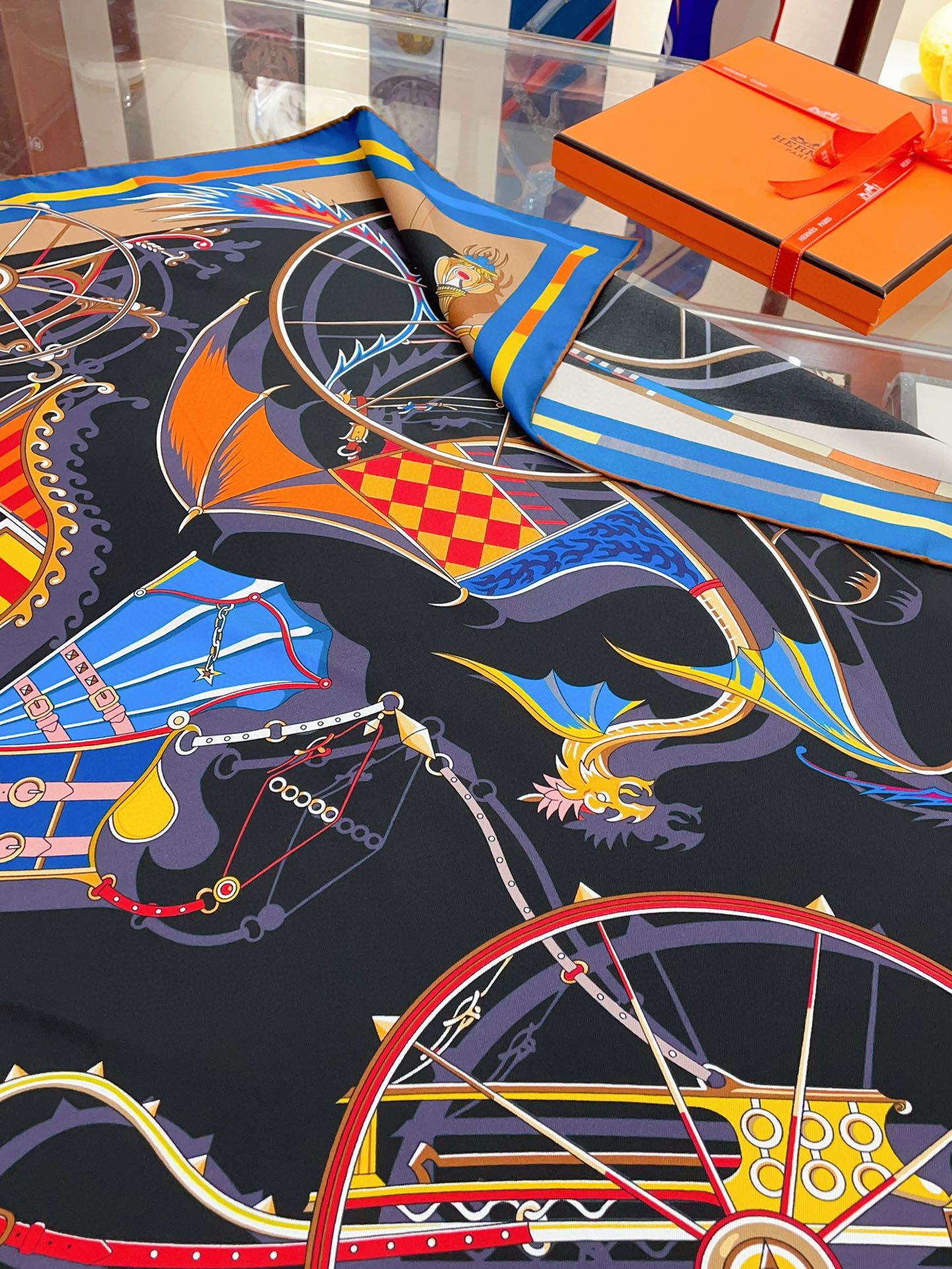 Voitures En Equilibre Scar 90 CM In Black Colorful Silk Twill 202491