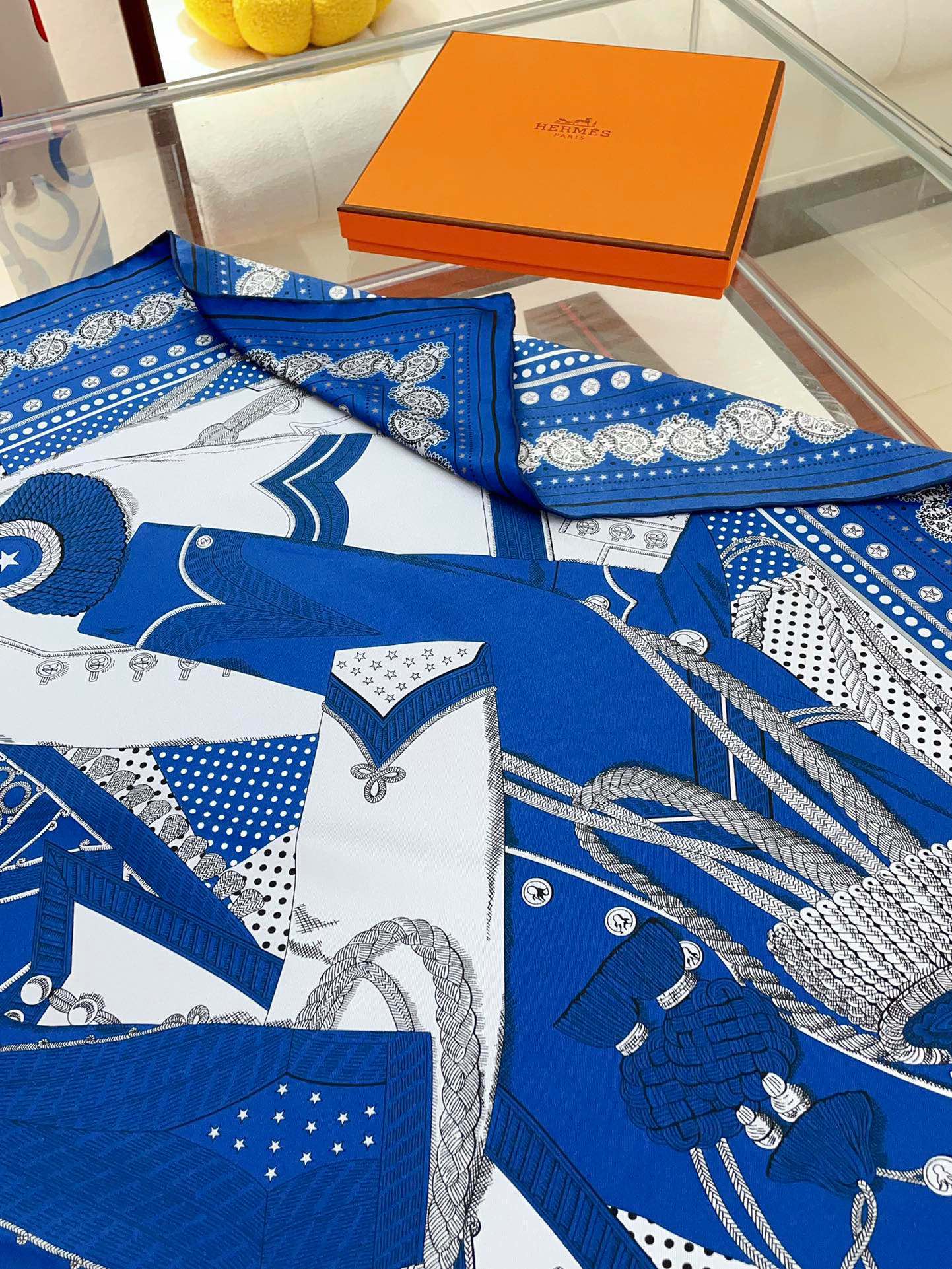 Zouaves Et Dragons Bandana Shawl 90 CM In Blue Colorful Silk Twill 262789