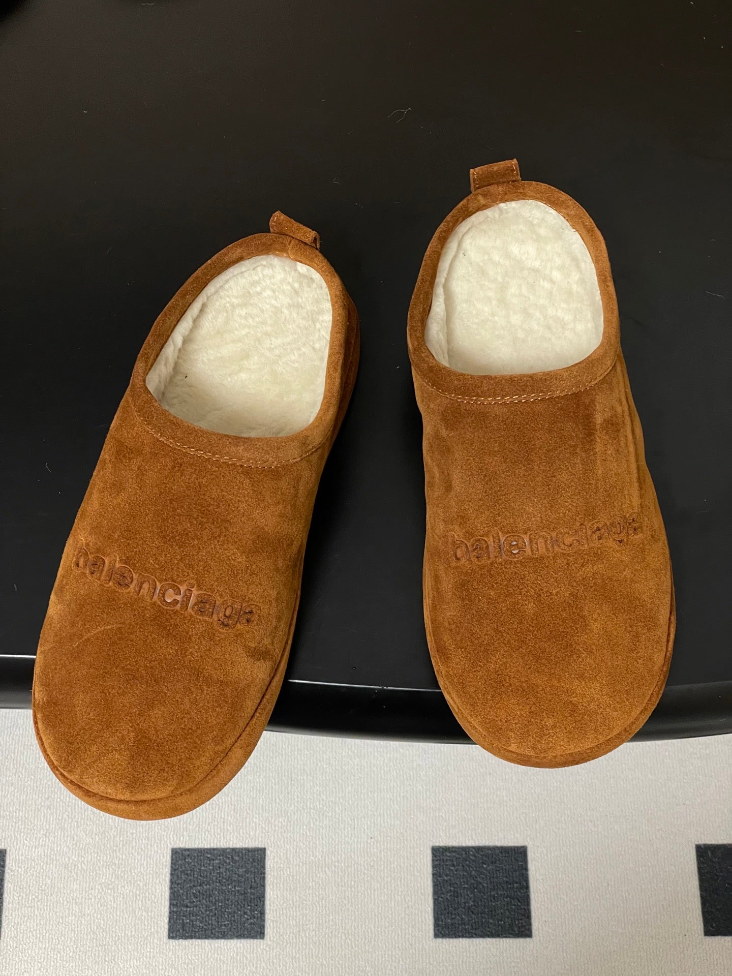 Balenciaga Mule Slip-On Caramel Brown Suede Wool 534531