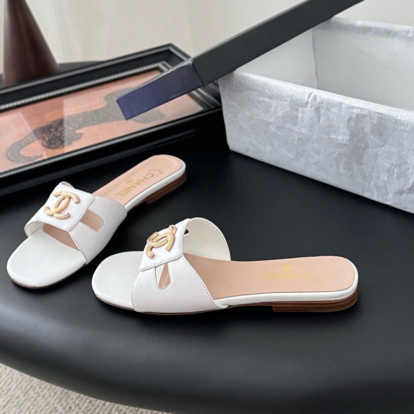 CC 25 Slippers White Cowhide 305284