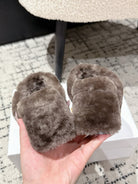 Chloe Covered Fur Slippers Dark Brown Wool 514329