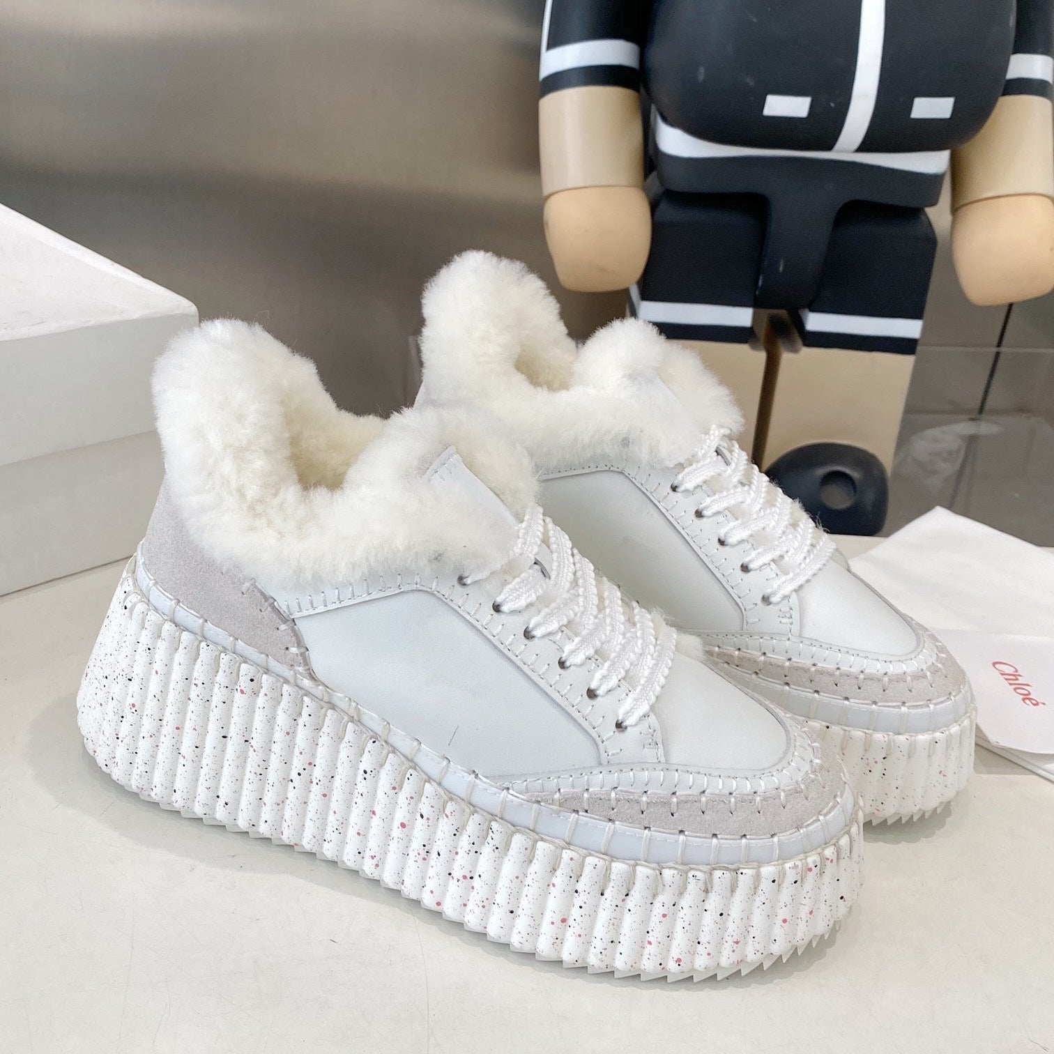 Chloe Nama Sneaker White Cowhide Wool 531607