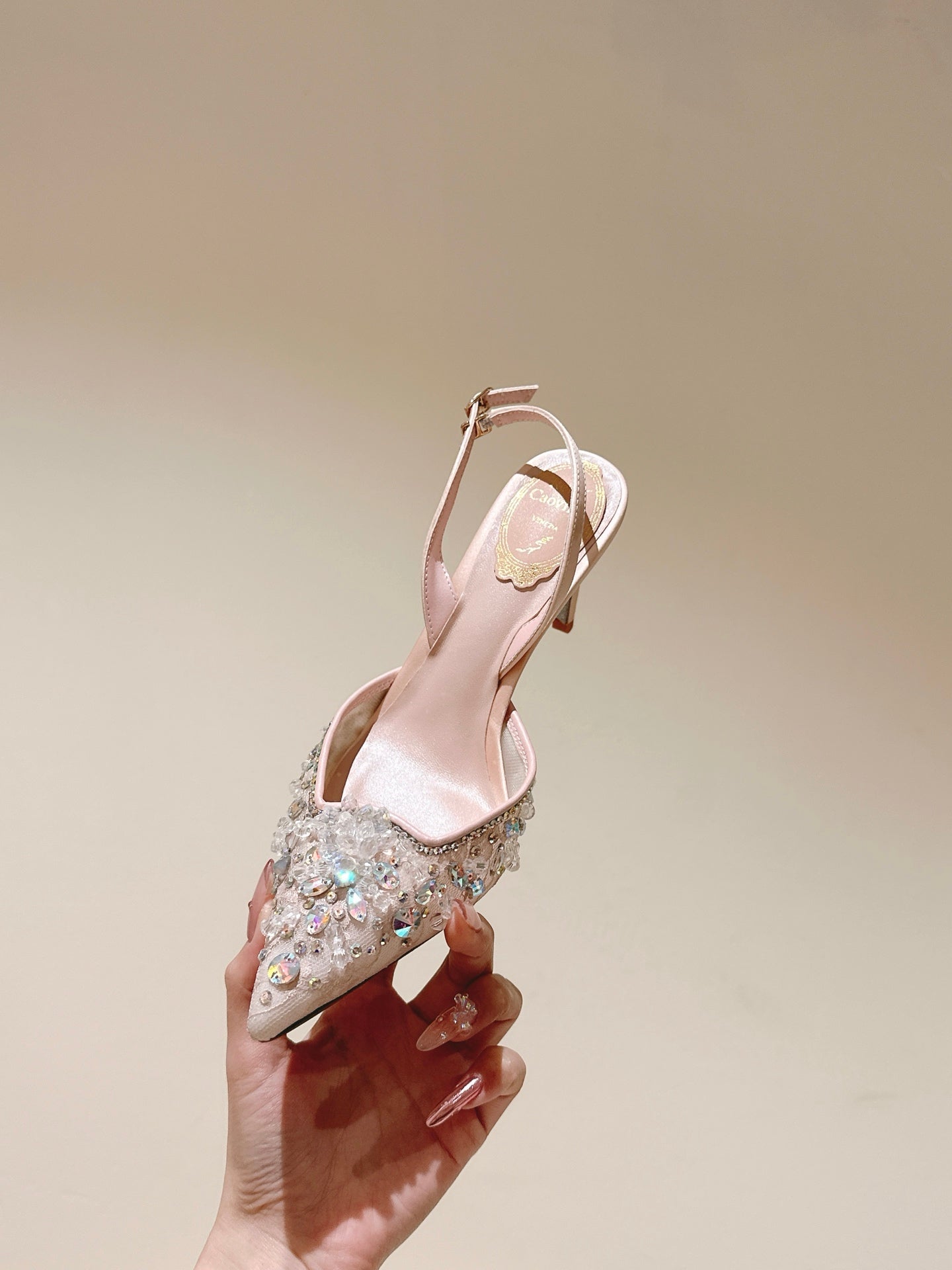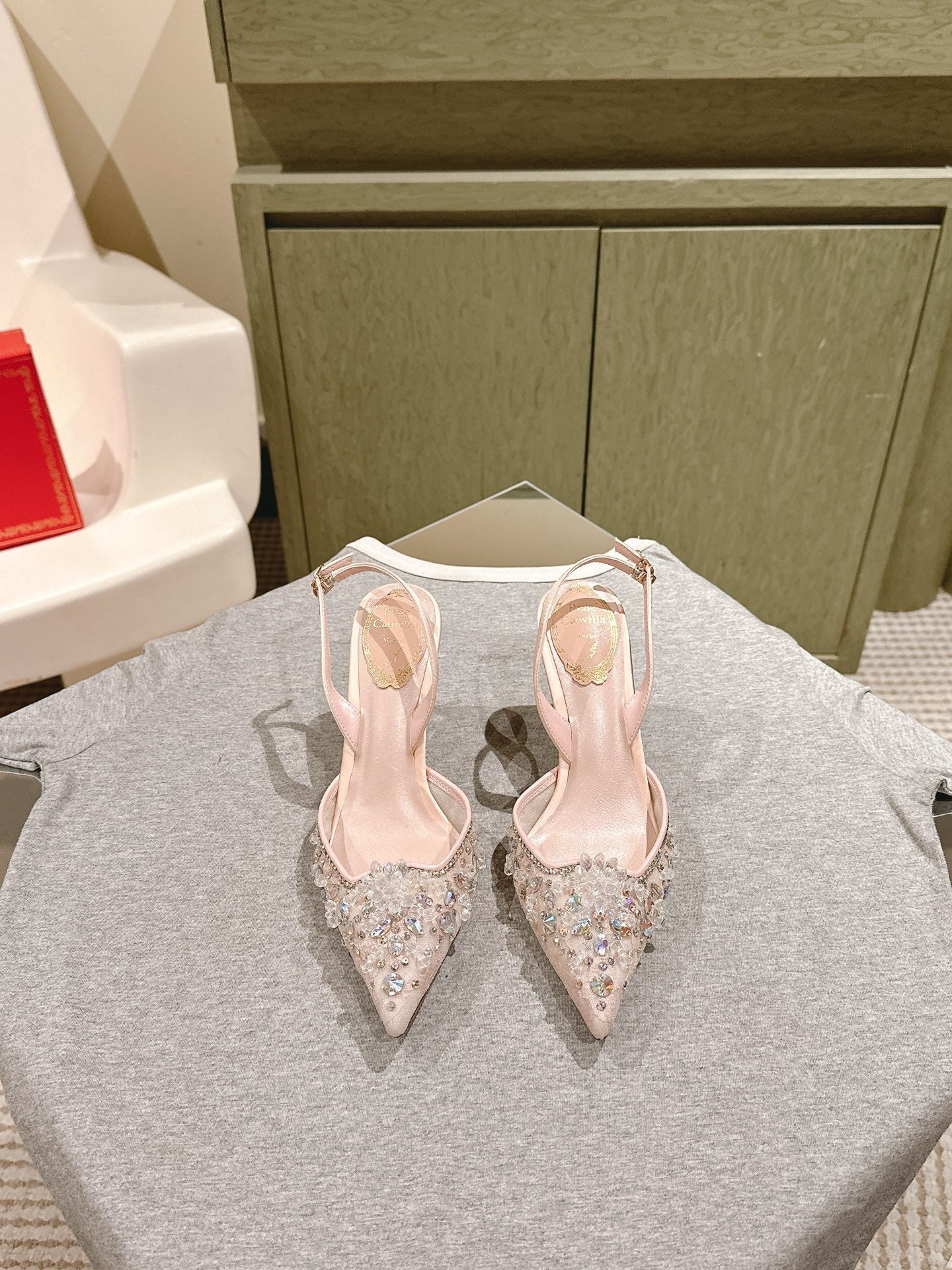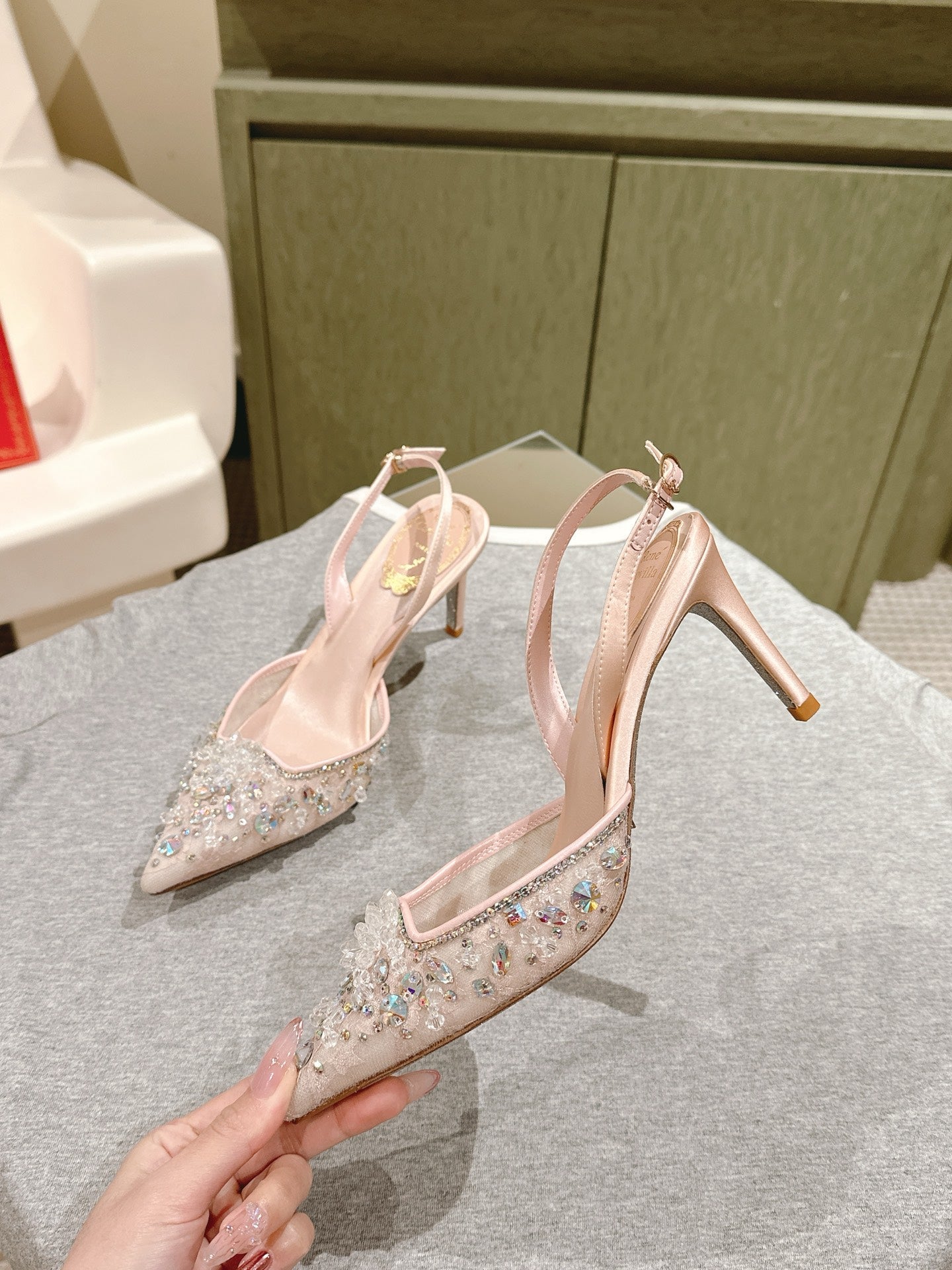 RC 25 Diamond Lace High Heeled Sandals Pink Nude Sheepskin 268056