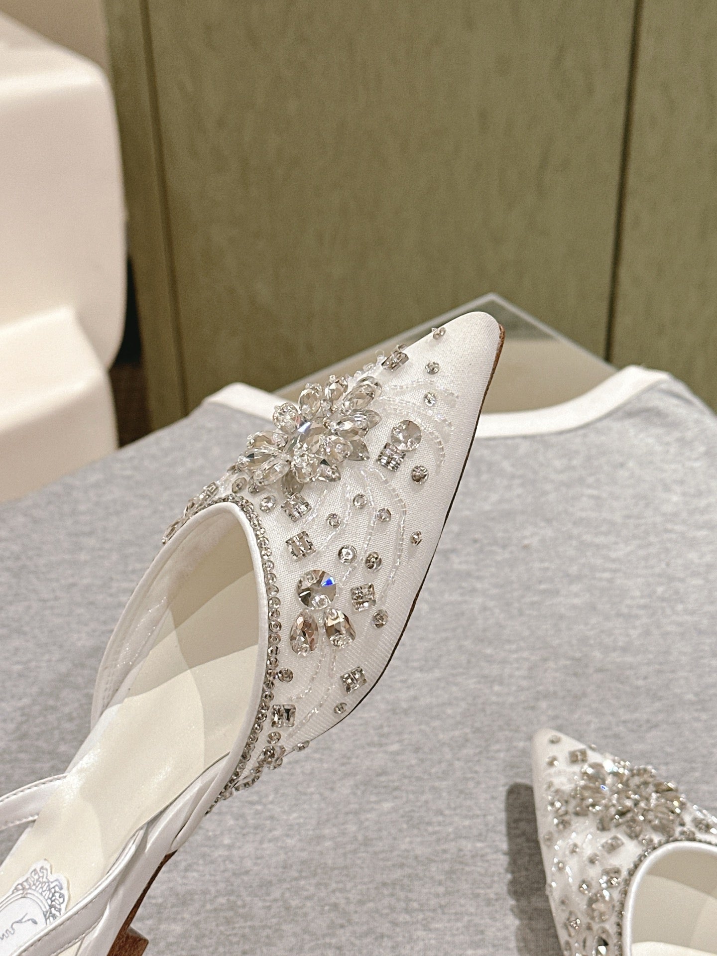 RC 25C Slingback Flat Shoe White Silk Rhinestones 268075