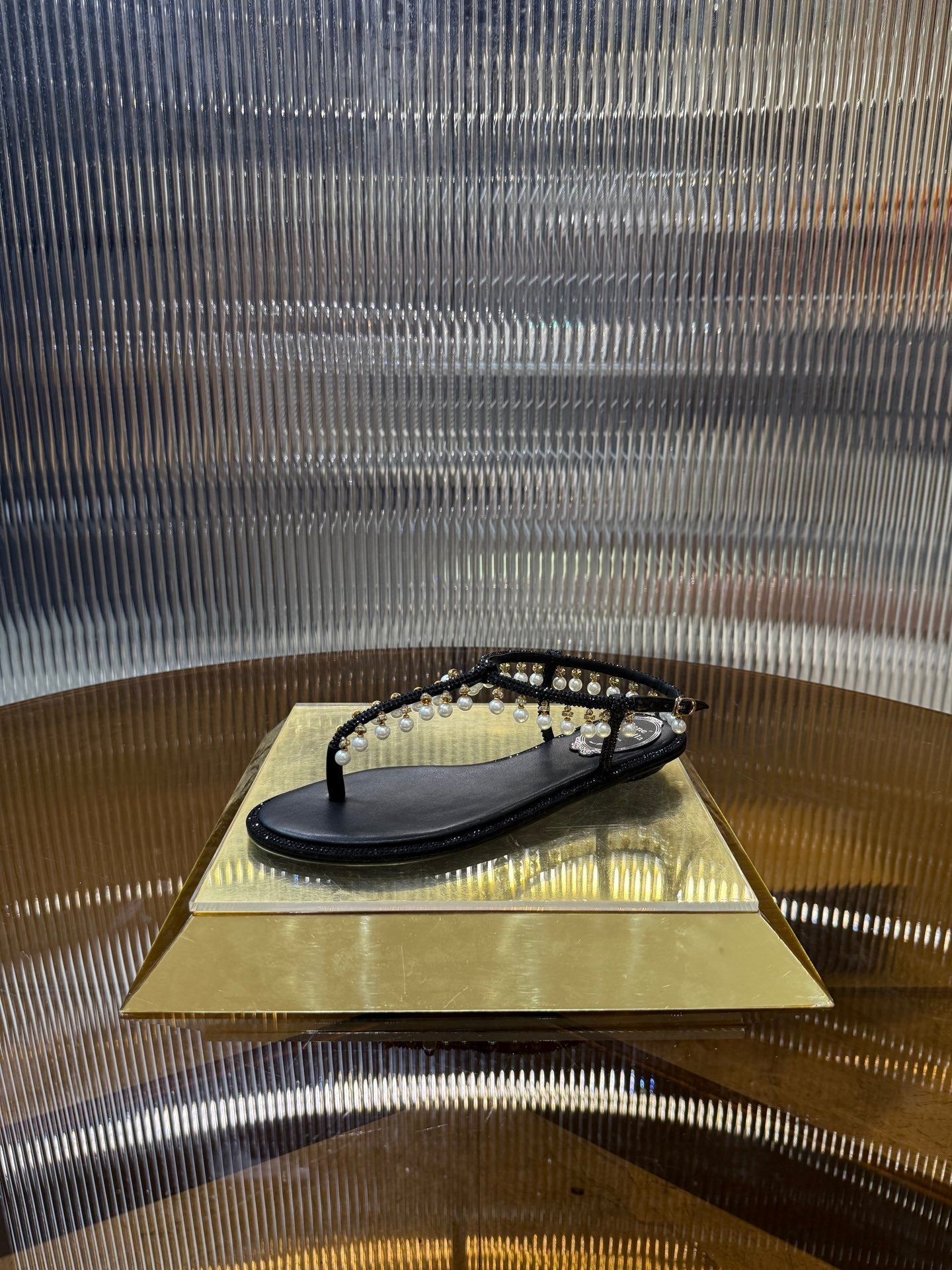 RC 25C Thong Diamond Flat Sandals Black Silk Rhinestone 275773