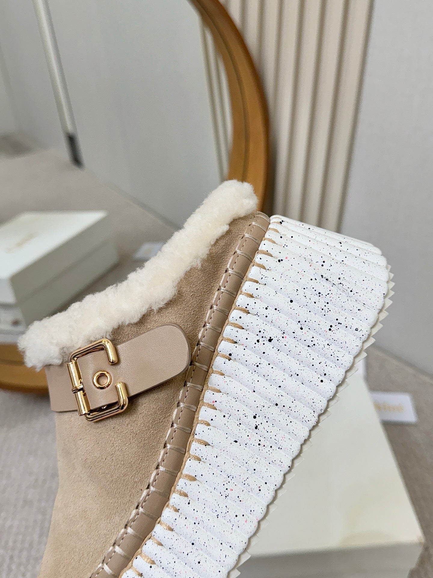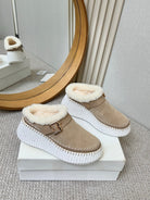 Chloe Nama Shearling-Lined Mule Beige Suede 528077