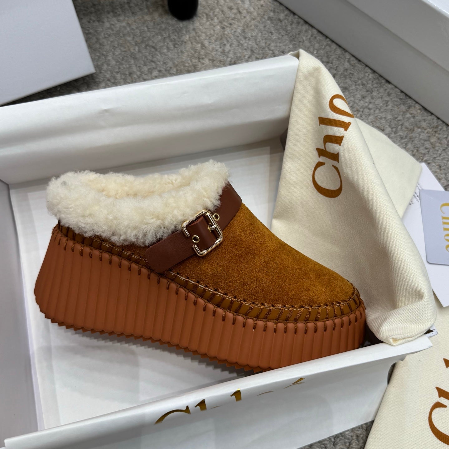 Chloe Nama Shearling-Lined Mule Brown Suede 523133