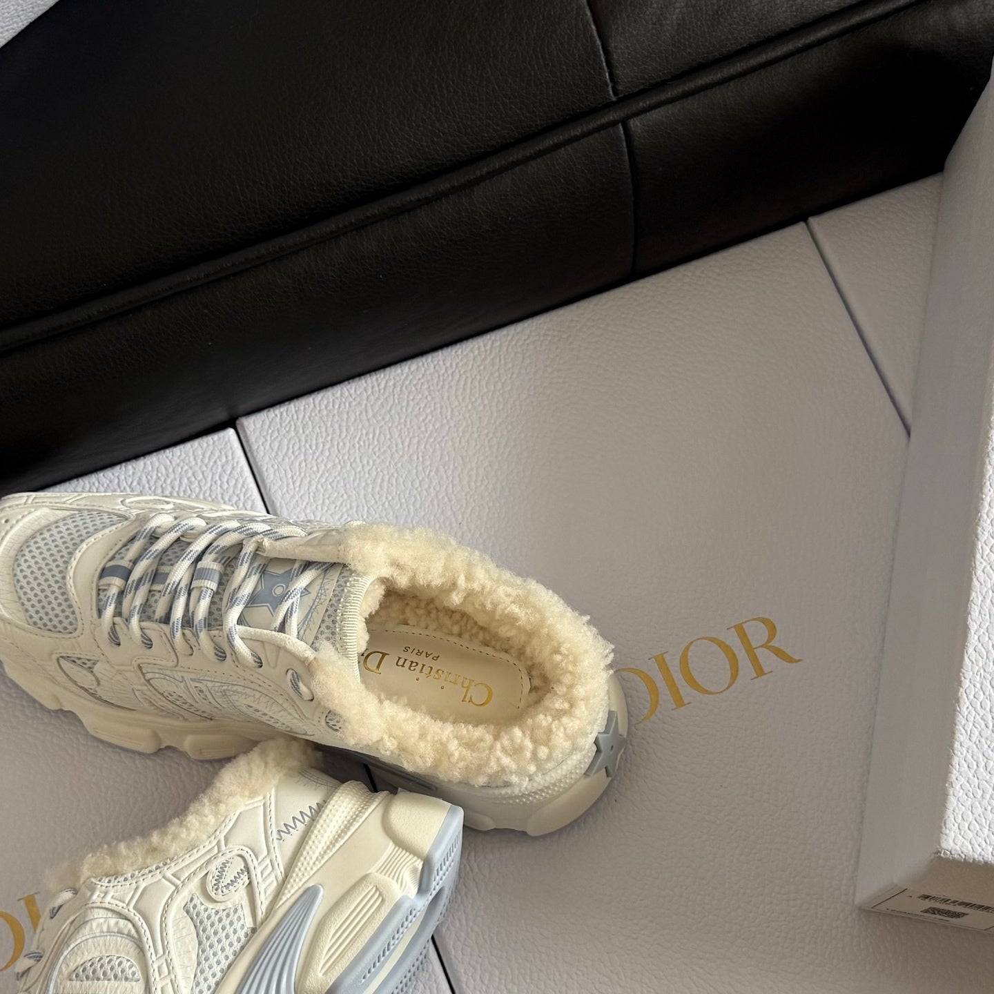 Dior 25 Chrono Sneakers Cream Blue Mesh Calfskin 531391
