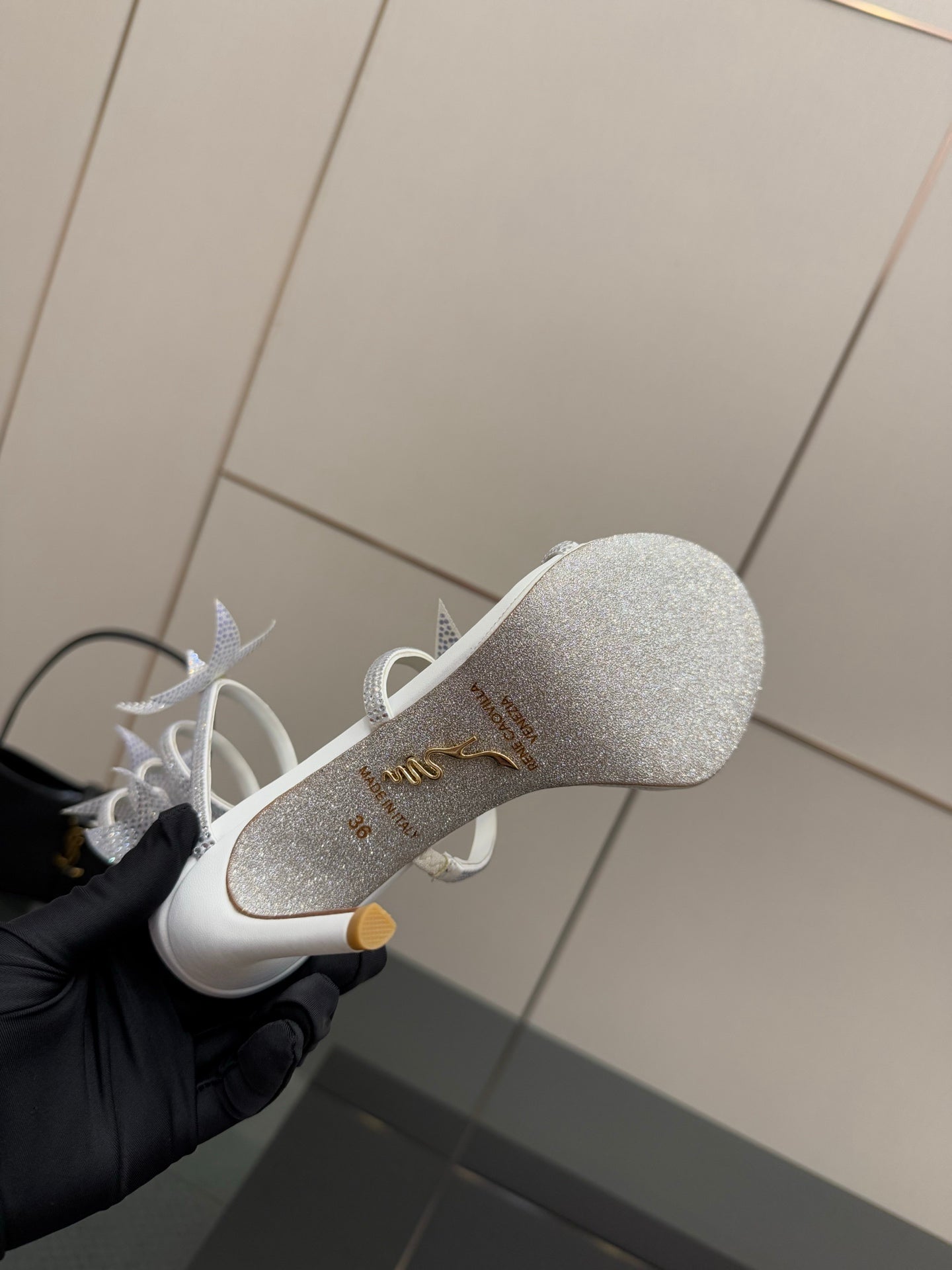 RC Sandals 9.5cm White Rhinestone Silk 302585