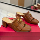 VT 2025 Signature Heeled Mule Brown Calf Leather 295076