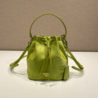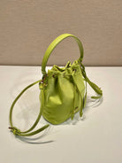 BUCKET BAG 19 IN APPLE GREEN RE-NYLON AND SAFFIANO LEATHER HANDLE