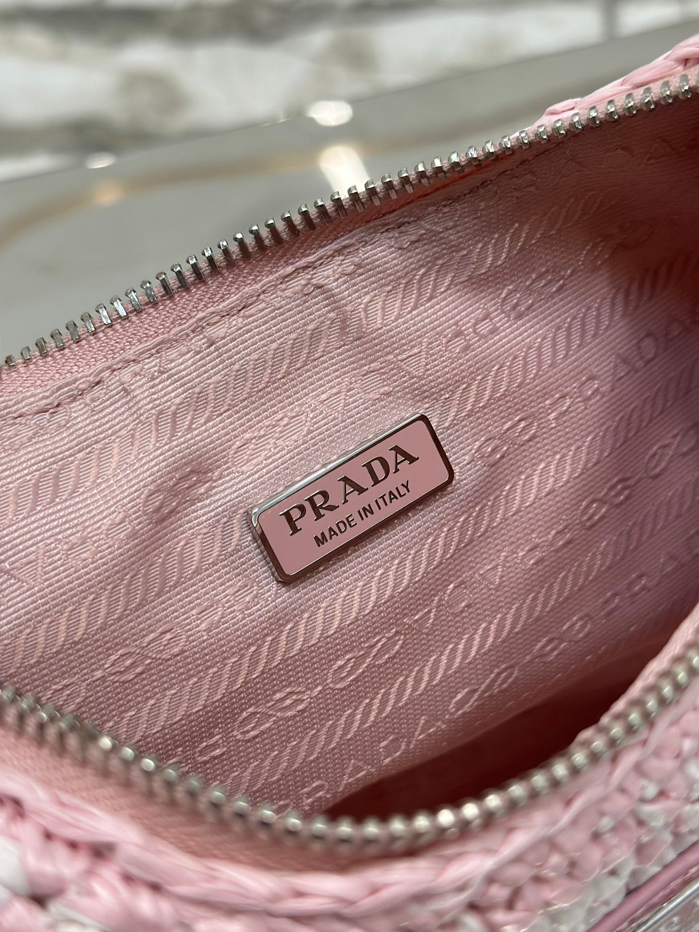 CROCHET HOBO BAG 22 IN PINK MIX WHITE RAFFIA SILVER HARDWARE