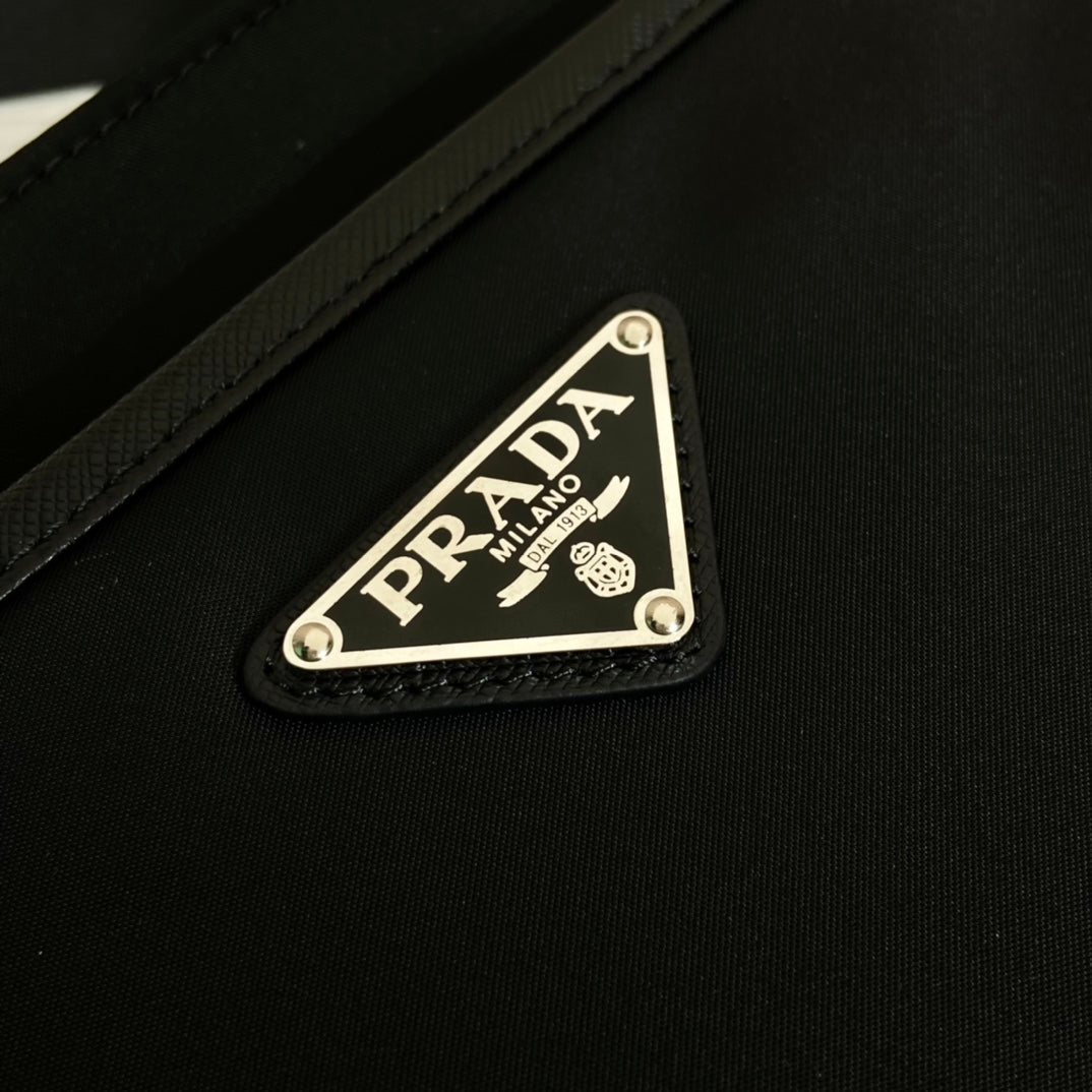 SQUARE BAG 28 IN BLACK RE-NYLON AND SAFFIANO LEATHER TRIM