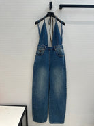 Prada 25 Halter Ntube Top Suspender Jumpsuit Blue Cotton