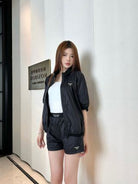 Prada 25 Hooded Triangle Logo Jacket Shorts Suit Black Polyester 217937