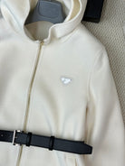 Prada 25 Mid-length Hooded Coat White Black Wool 637352