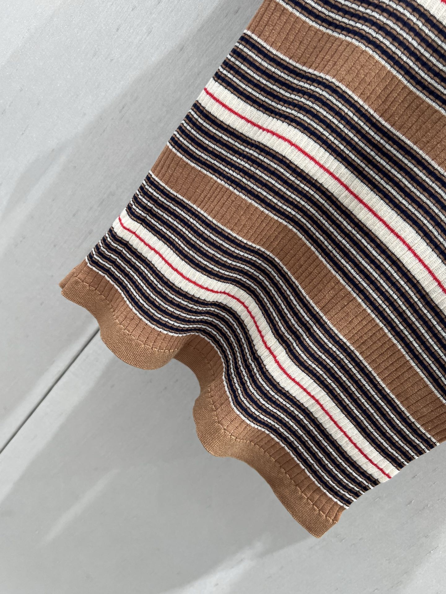 Prada 25 Striped Knitted Polo Short-sleeved Top Brown mix Black Cotton Poliamide 217945