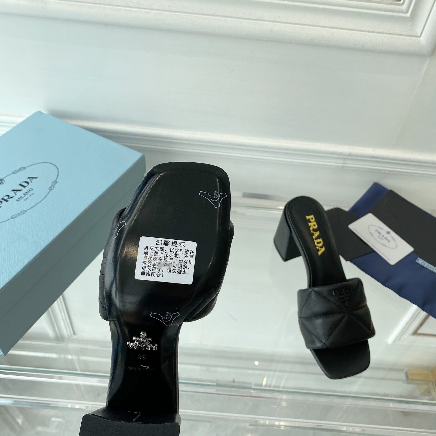 Pra Heeled Sandal 65 Square Sole Quilted Black Leather