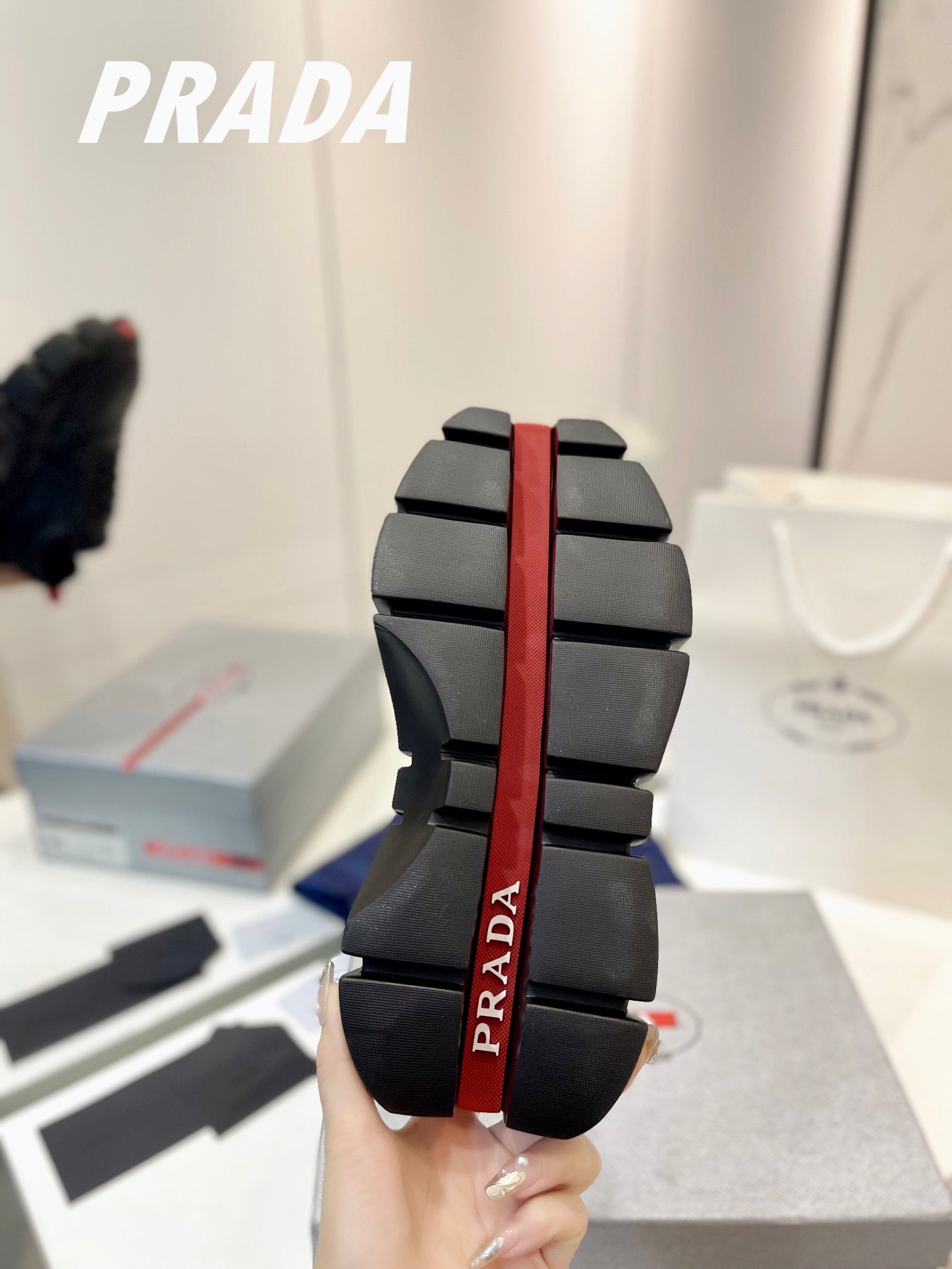 PRA BRUSHED THICK-SOLE SNEAKERS BLACK CALFSKIN
