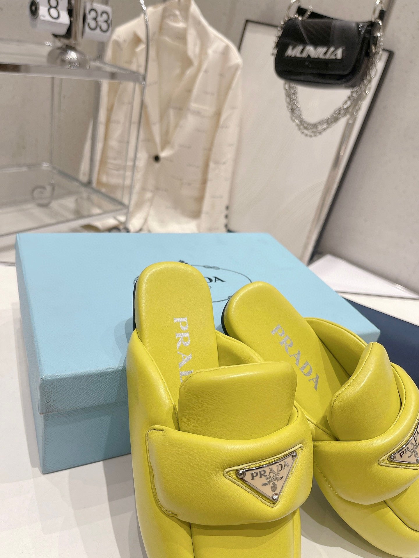 PRA SOFT PADDED NAPPA SHEARLING MULES LIME LAMBSKIN