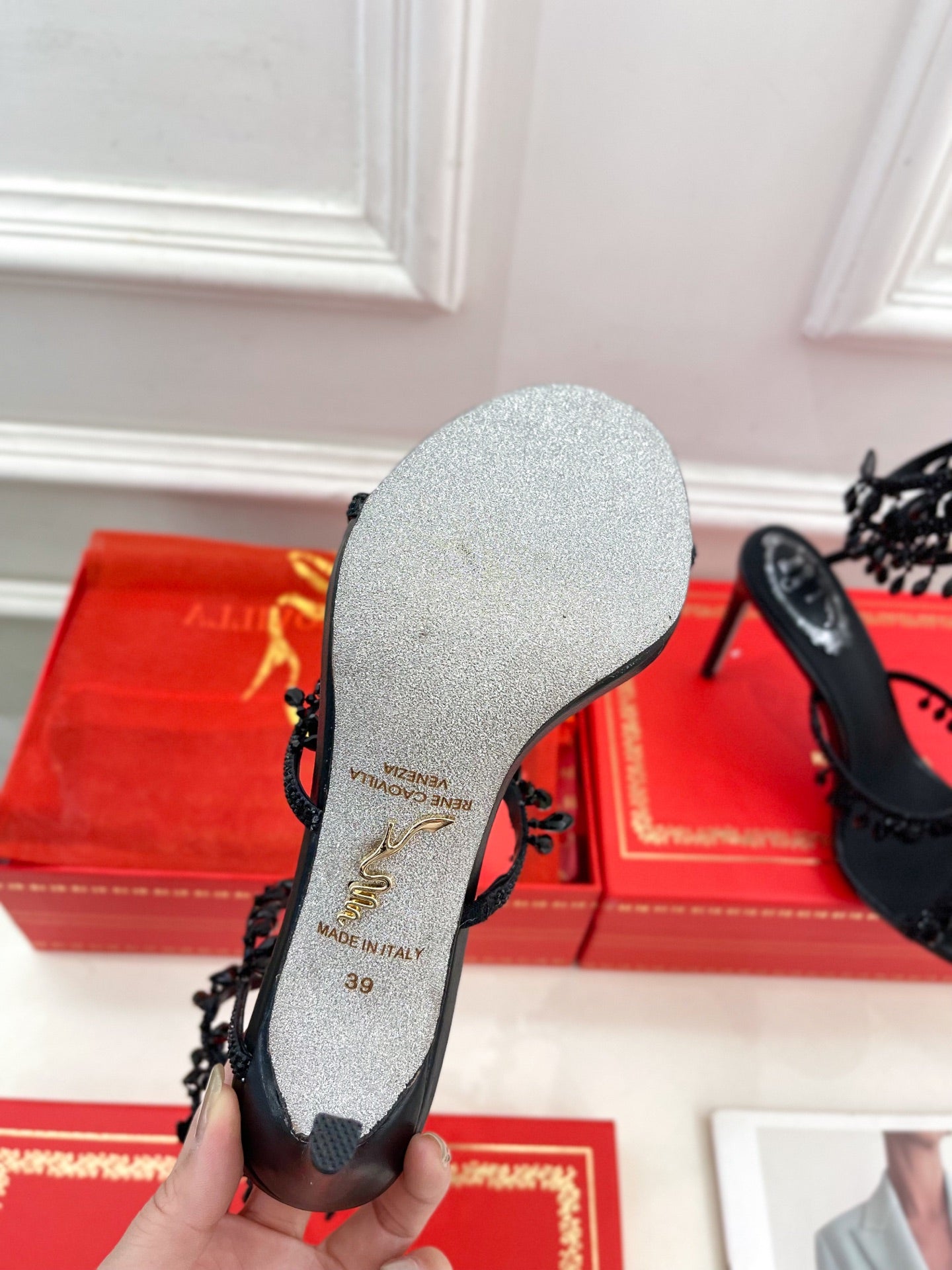 RC 25 Crystal Tassel High-Heeled Sandals Black Silk Crystal Diamond 253539