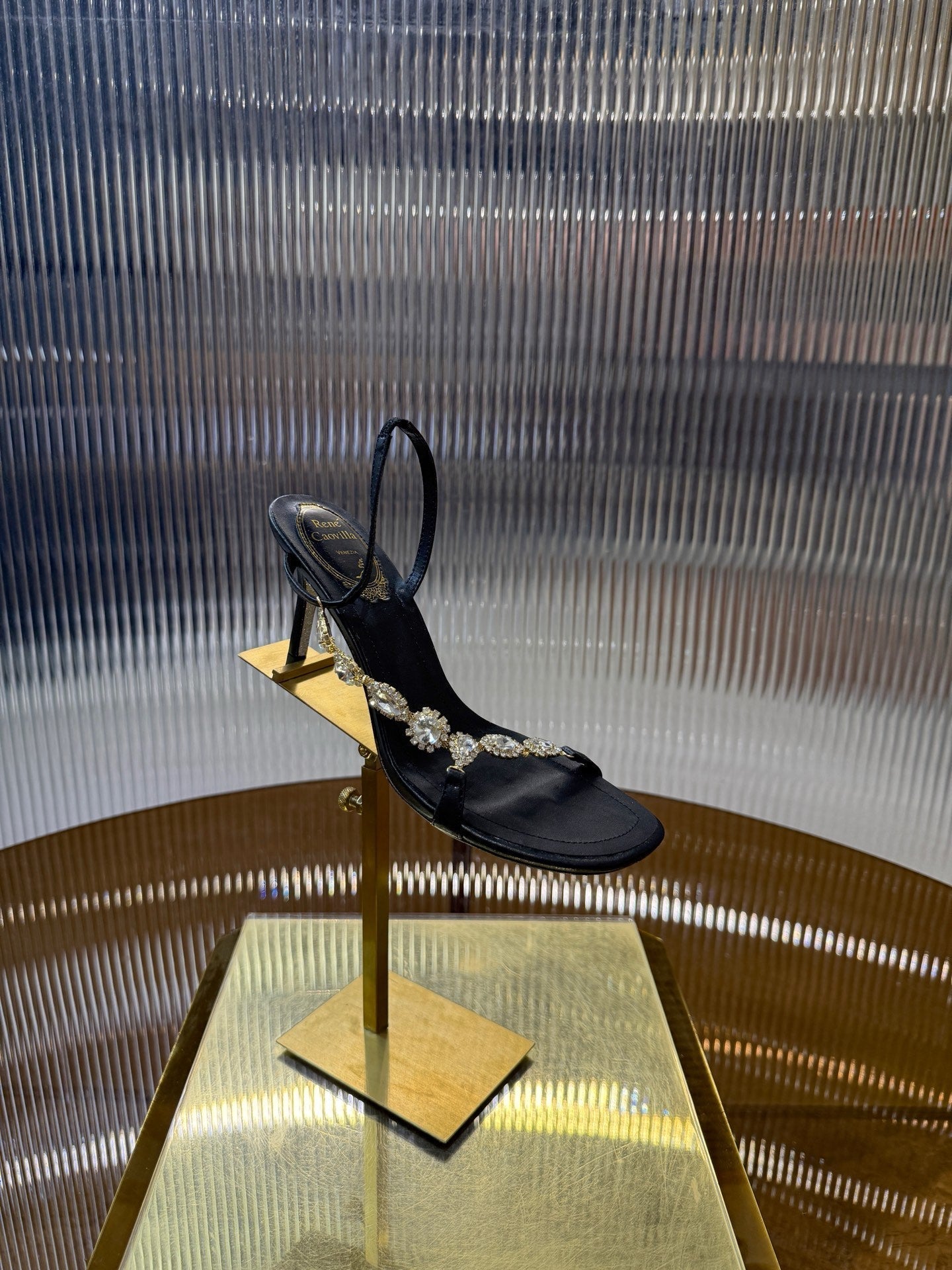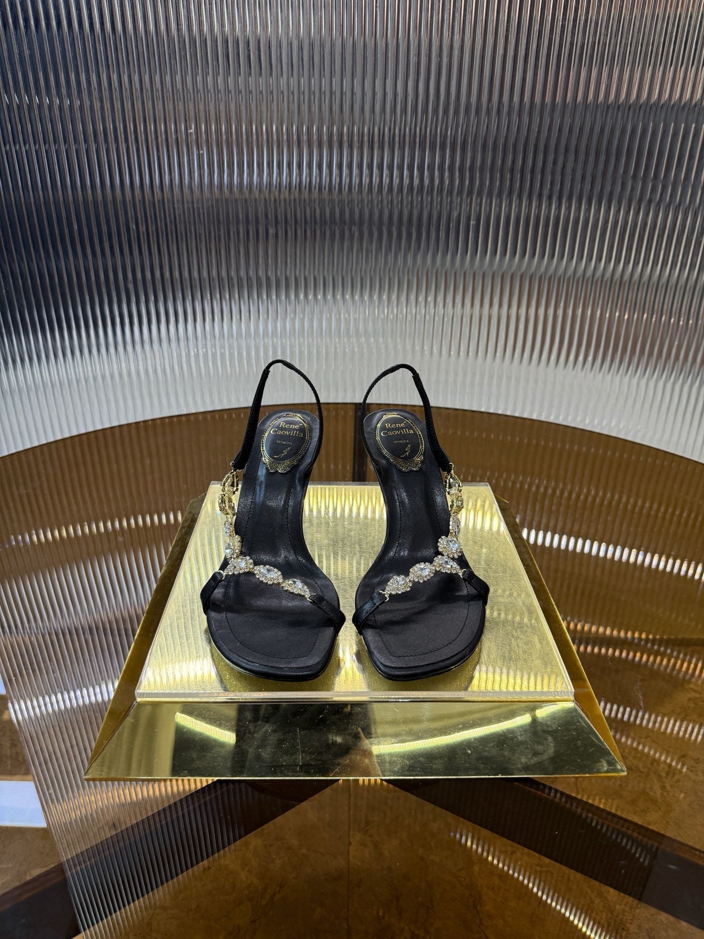 RC 25C Diamond Sandals Black Sheepskin Rhinestones 314825