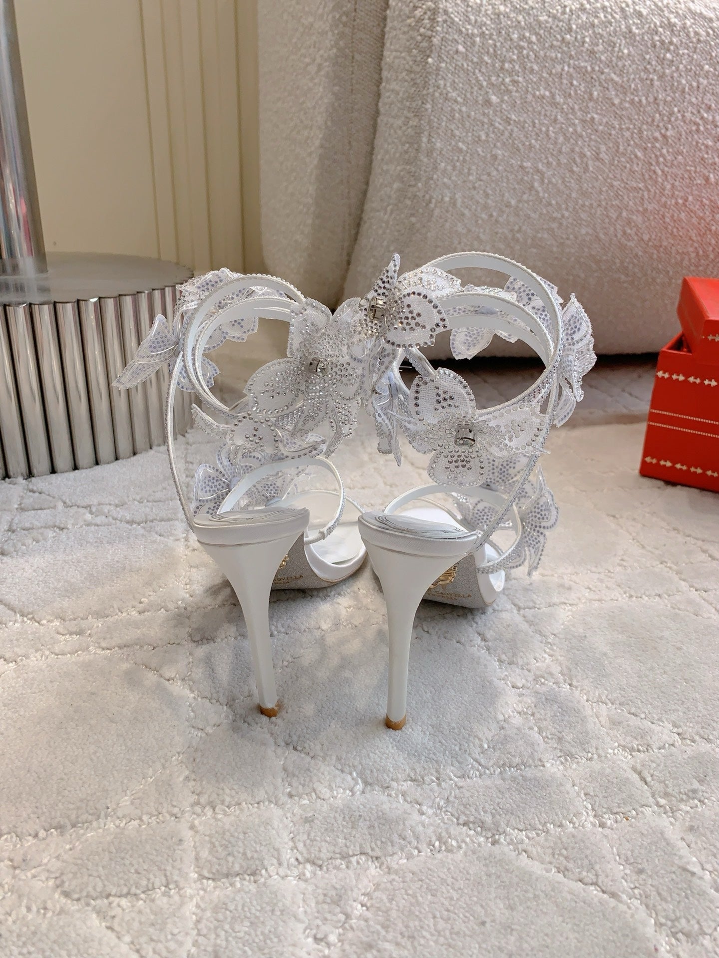 RC Flower Sandals Silver Sheepskin Rhinestones 328468