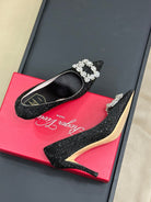 Flower Strass Buckle Pump 85 Crystal Black Leather