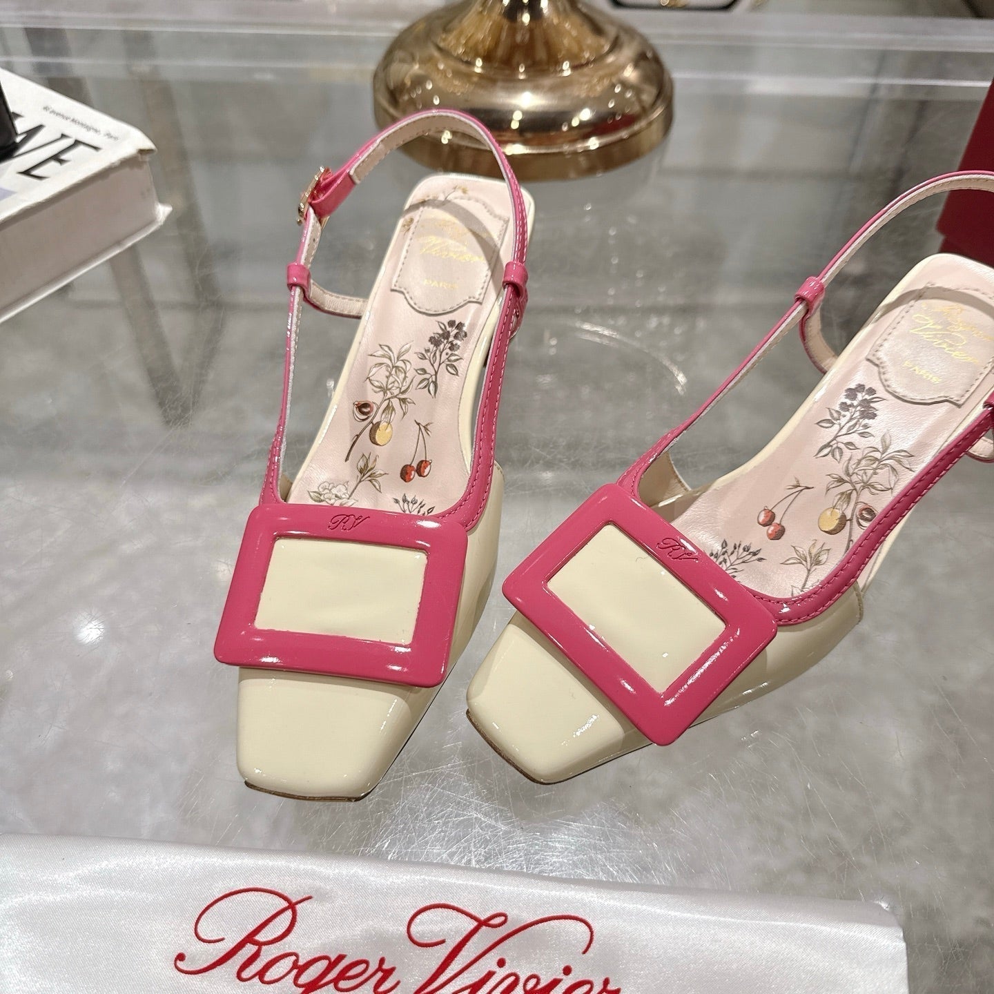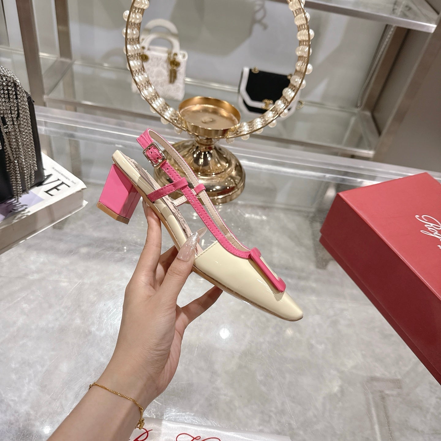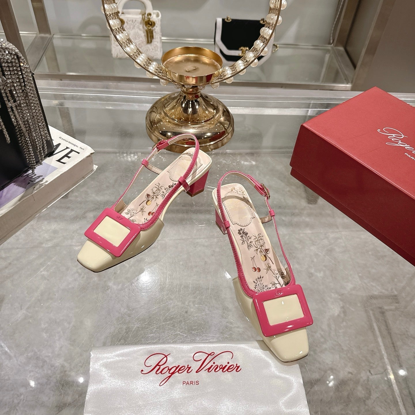 Viv 25 Flower Slingback Pink Italian Leather 300786