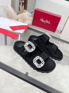 Viv 25 Slidy Diamond Slippers Black PVC Silk Cowhide 259287