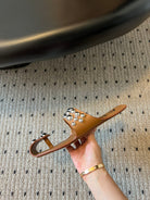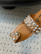 ALAIA FOLDED FLAT MULES WITH SPHERES ON COPPER BROWN CALFSKIN