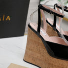 ALAIA WEDGE SANDAL IN BLACK GLOSSY CALFSKIN AND BEIGE RUBBER