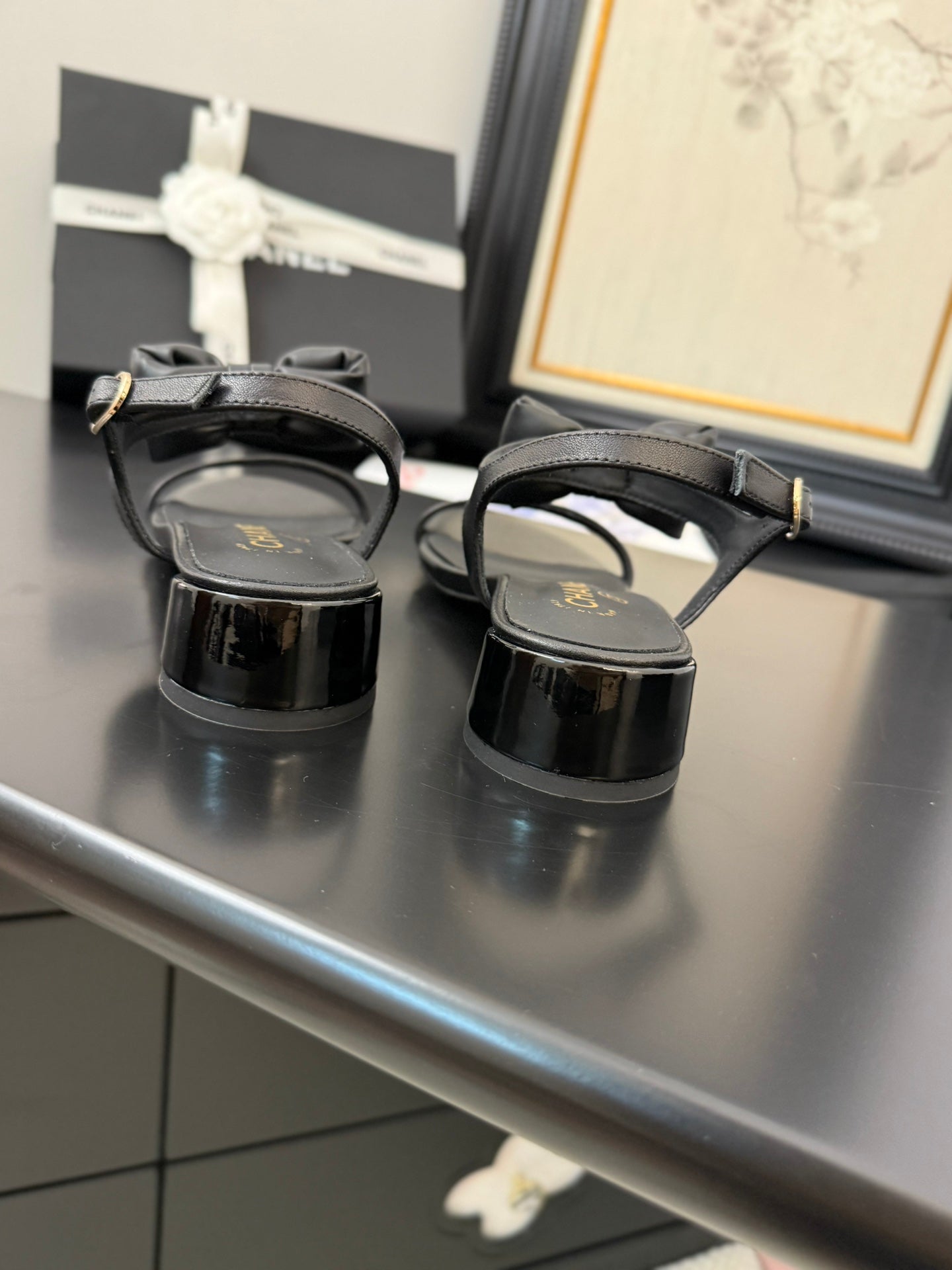 CC 25 Bow Attached Sandals Black Sheepskin 233421