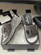 CC 25 Platform Slippers Grey Velvet Sheepskin 334239