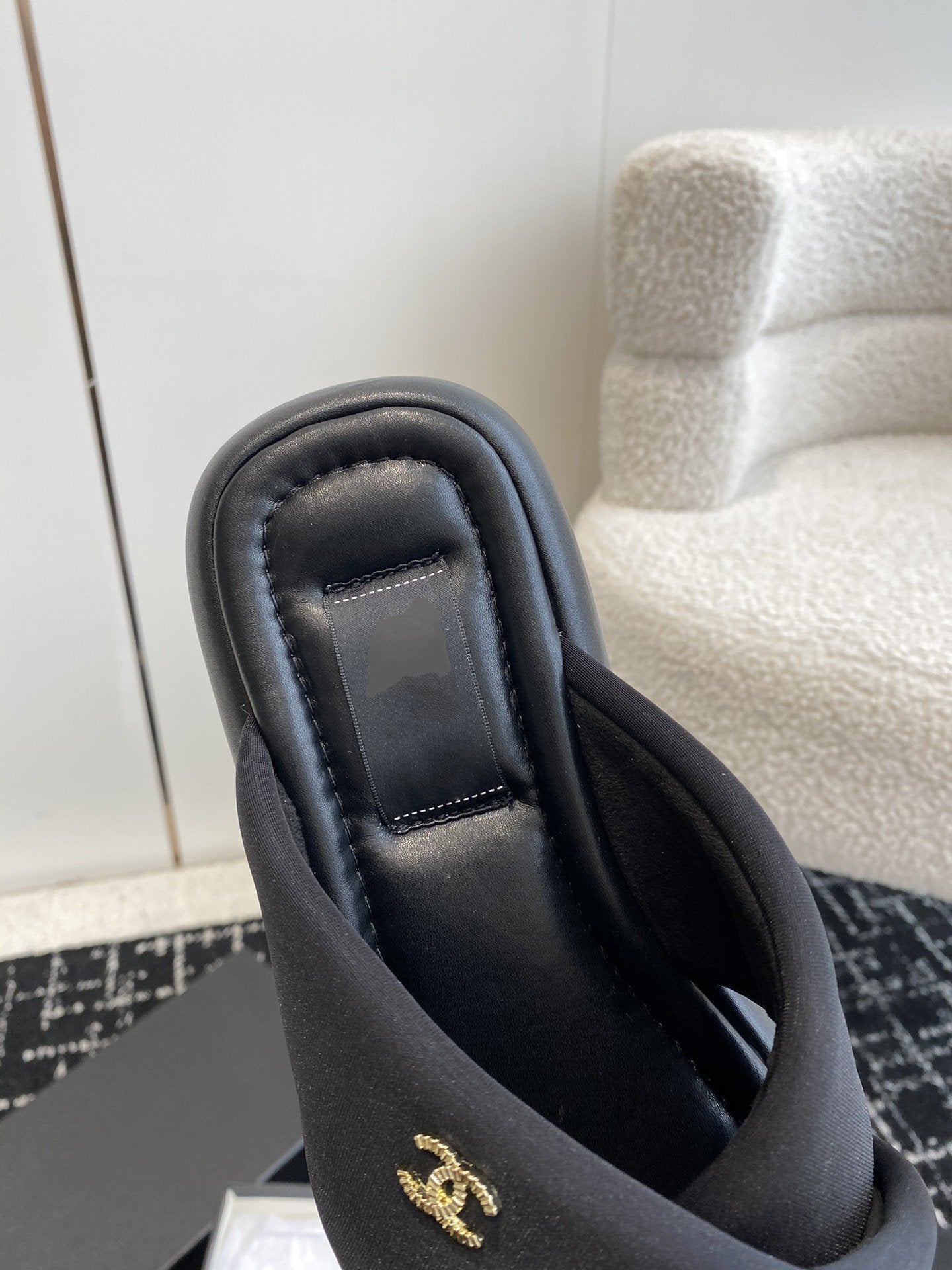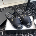 cross puffy slipper black lycra fabric
