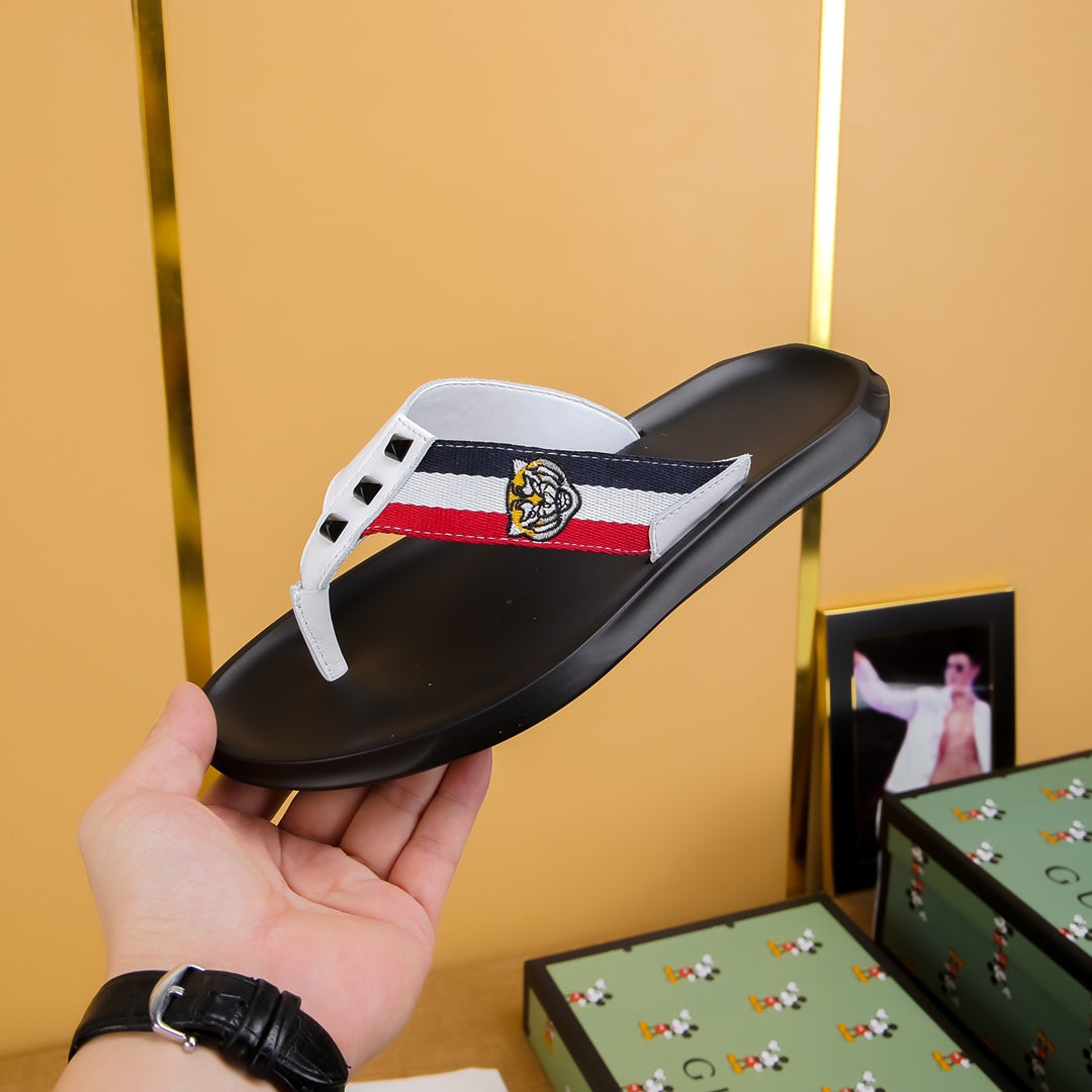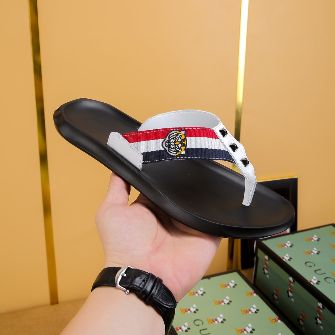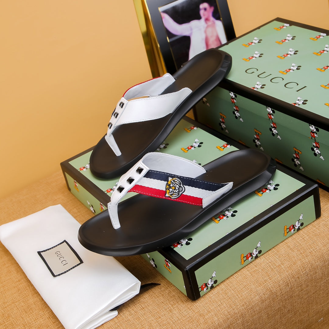 GG Men's Thong Sandals White Cowhide 587227