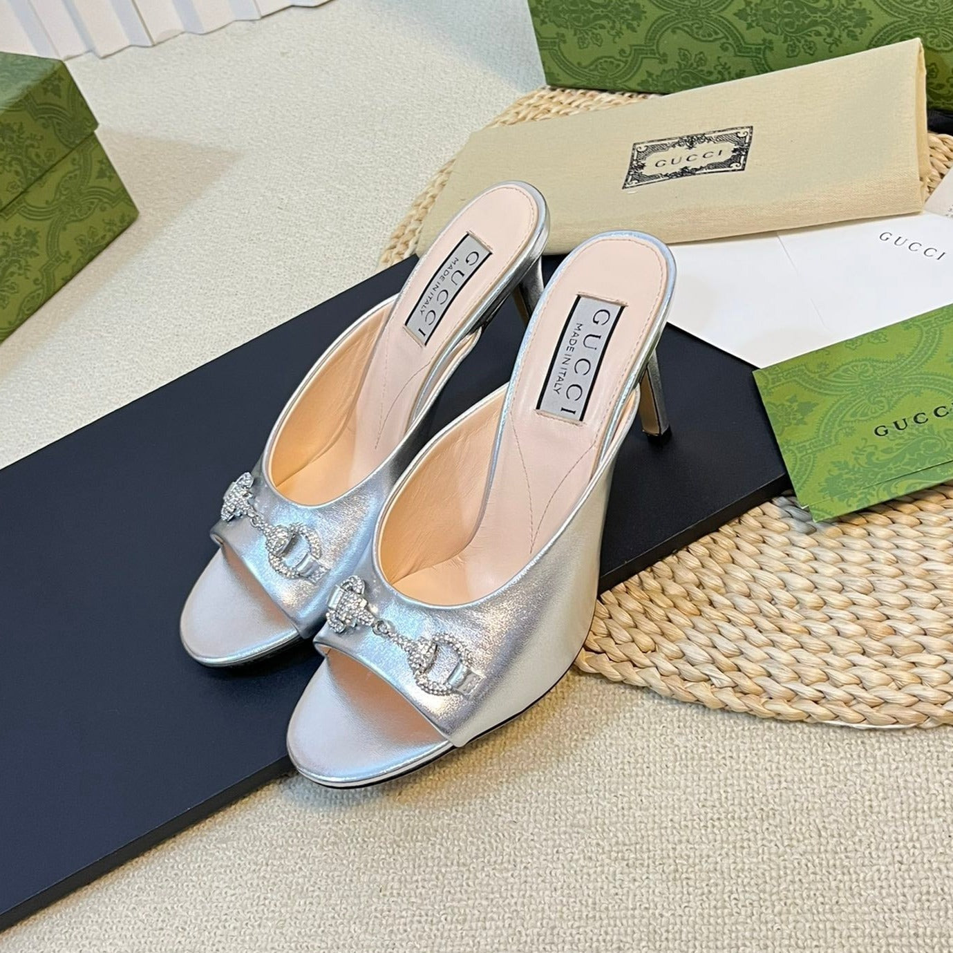GG Women's Horsebit mid-heel slide sandal in Silver