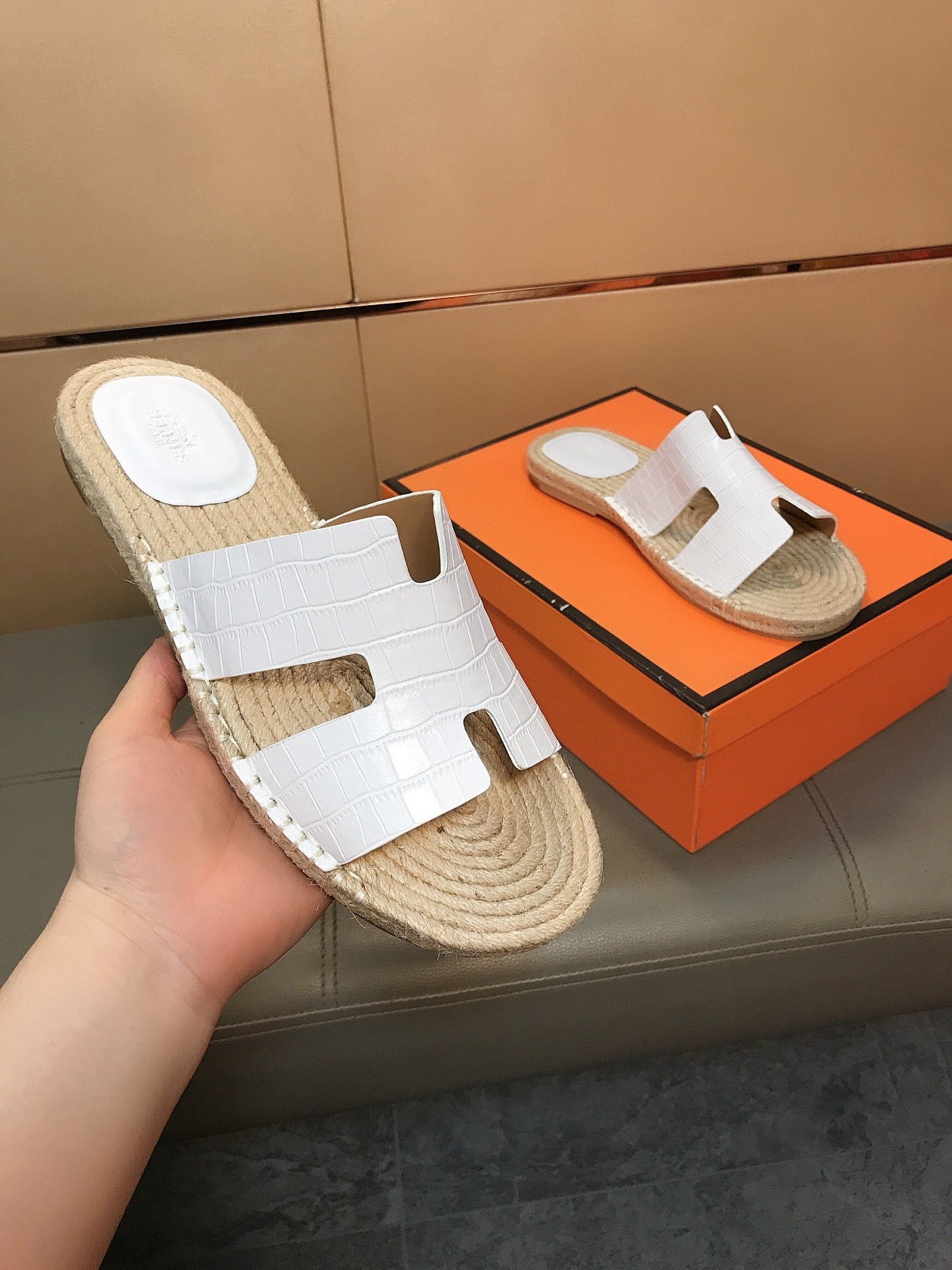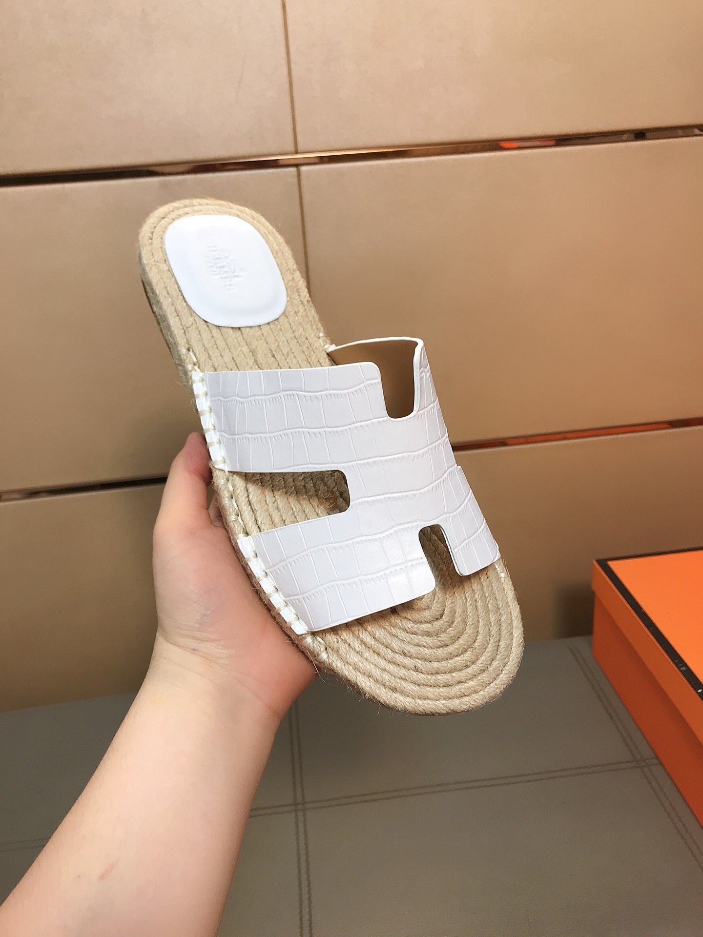 HM Men's Antigua Espadrille White Embossed Cowhide 704128