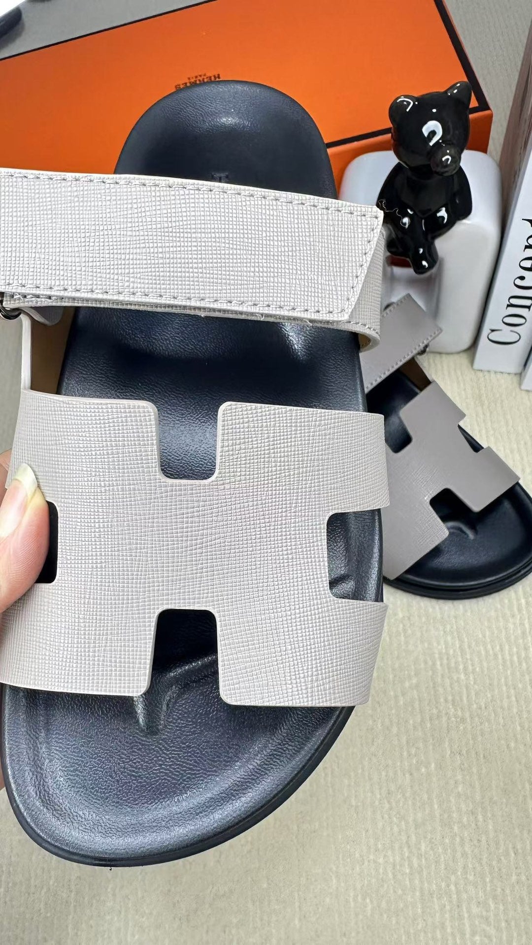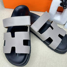HM Men's Chypre Slide Black Grey Cowhide 540211
