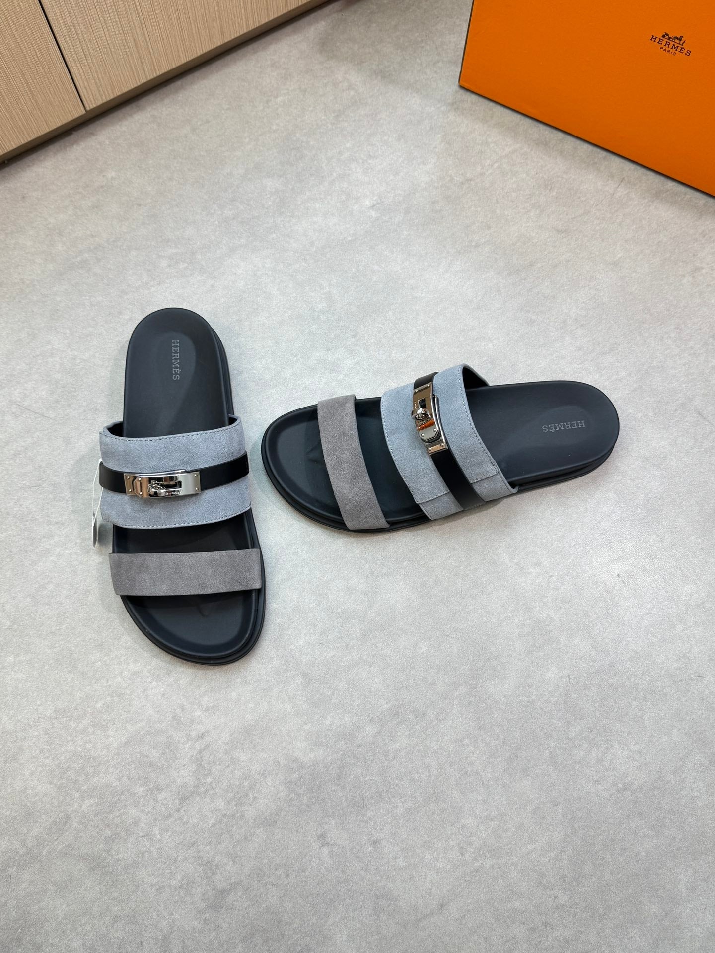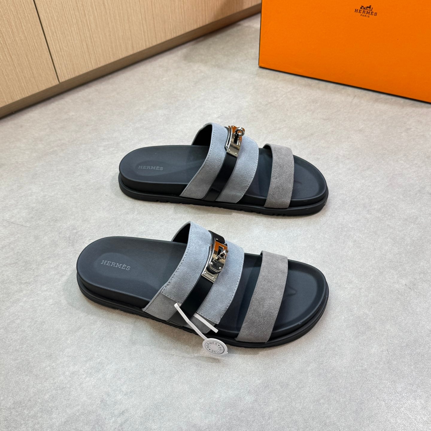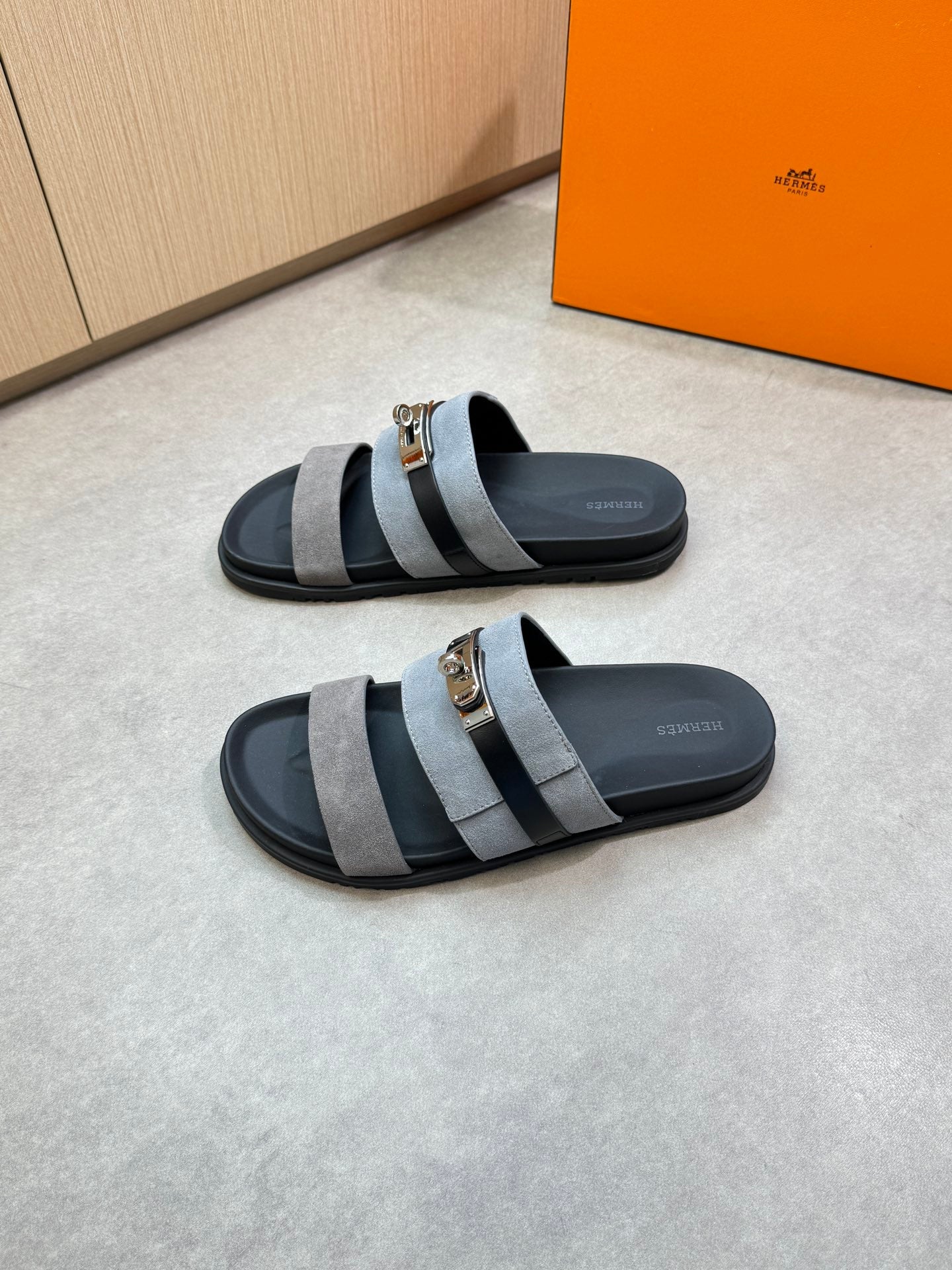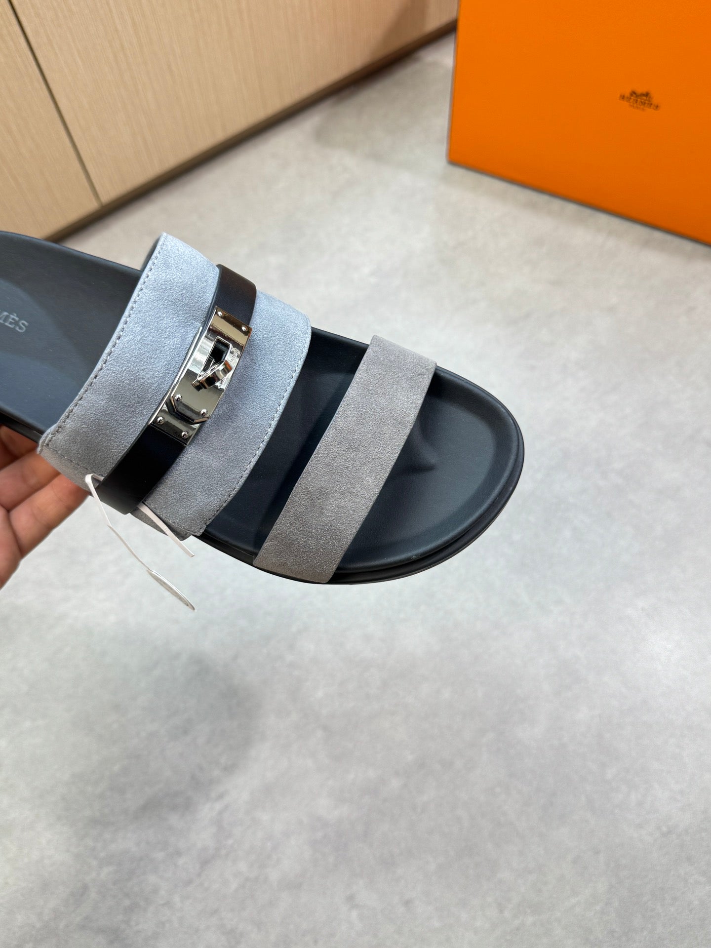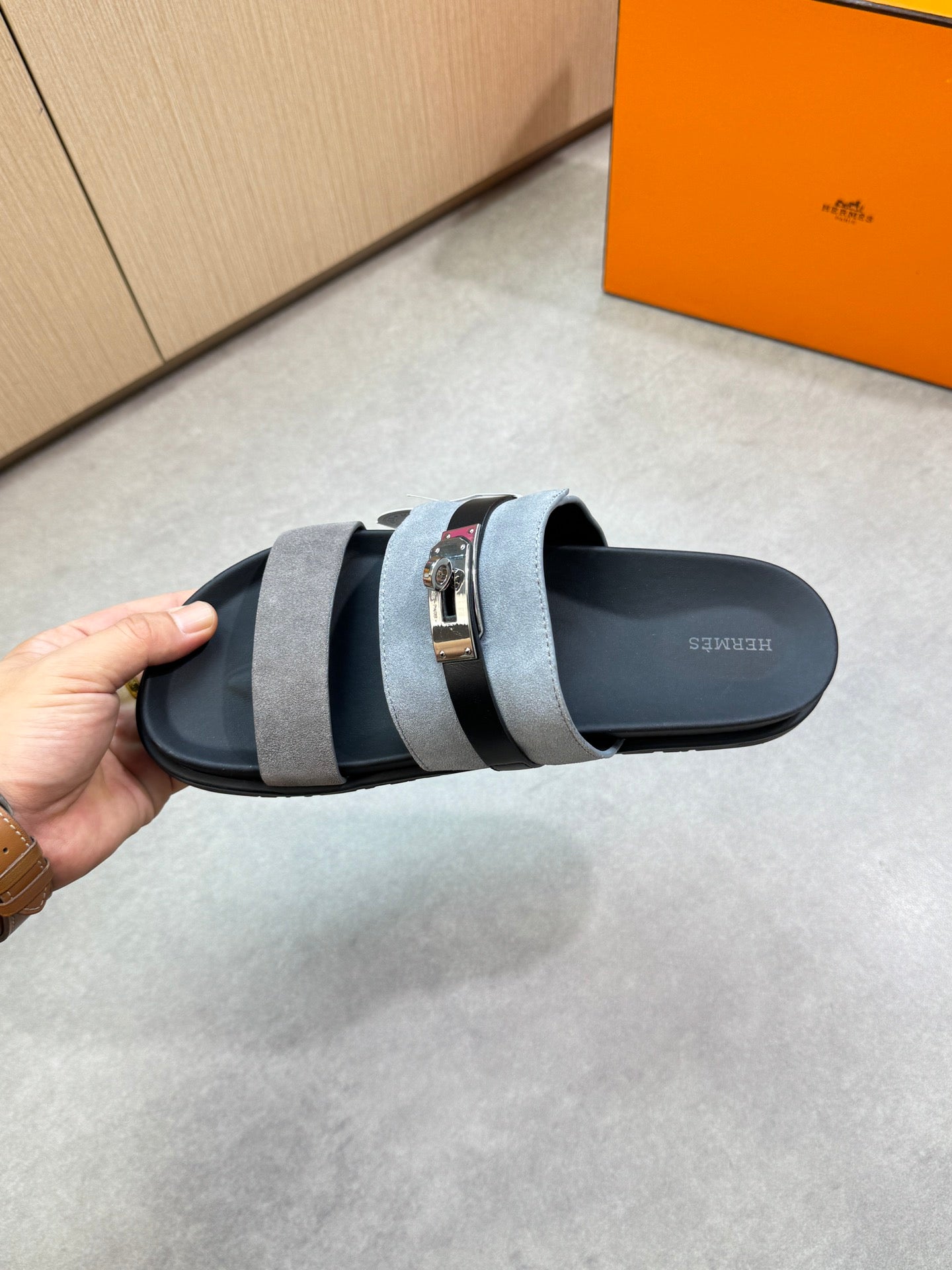 HM Men's Jackson Sandals Grey Calfskin Suede 722041