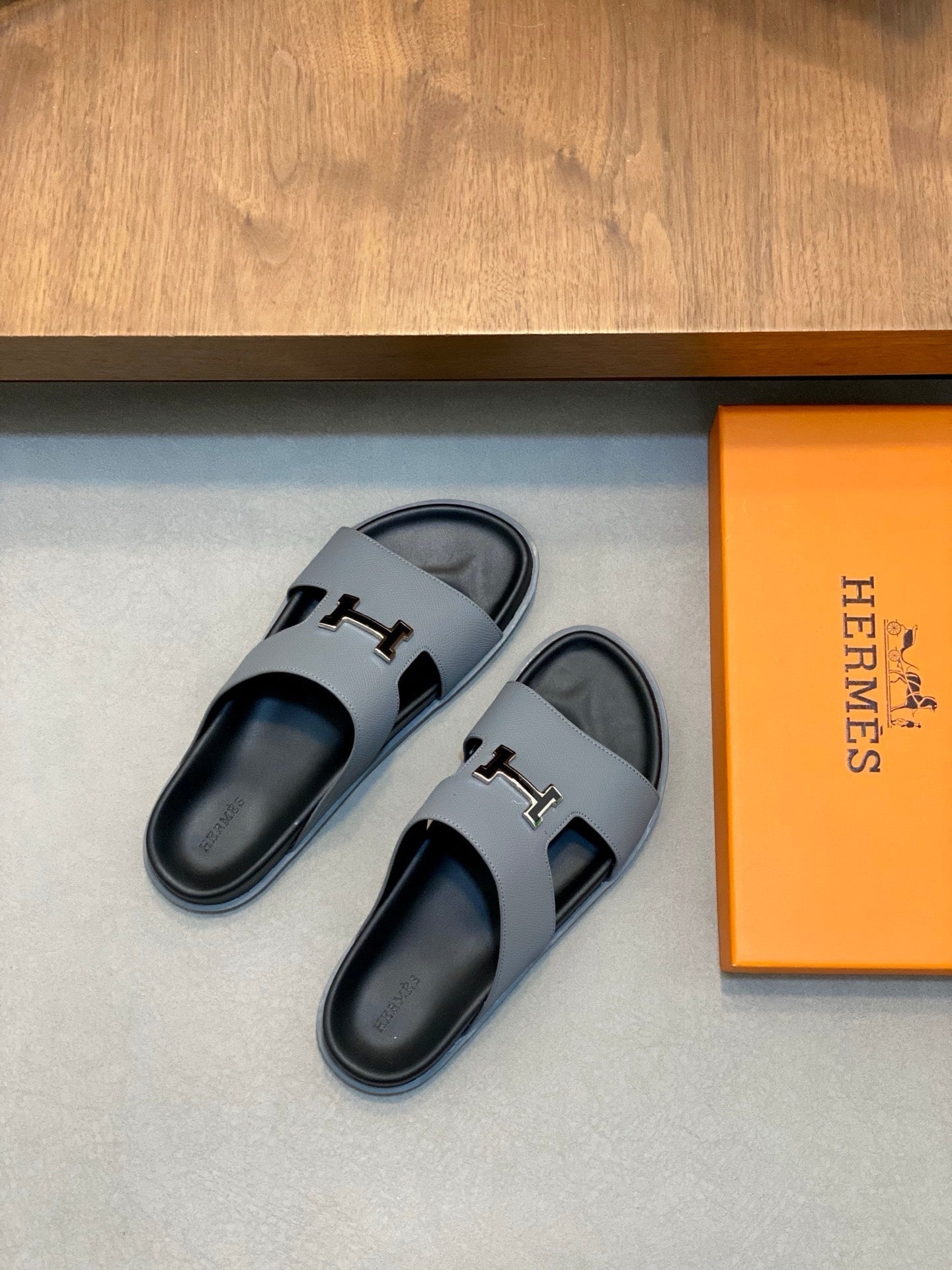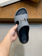 HM Men's Slide Grey Cowhide Leather 589000
