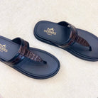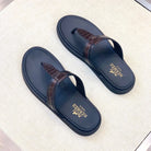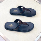 HM Men's Thong Sandals Brown Black Rubber Sheepskin 561666