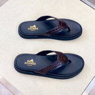 HM Men's Thong Sandals Brown Rubber Sheepskin 561669