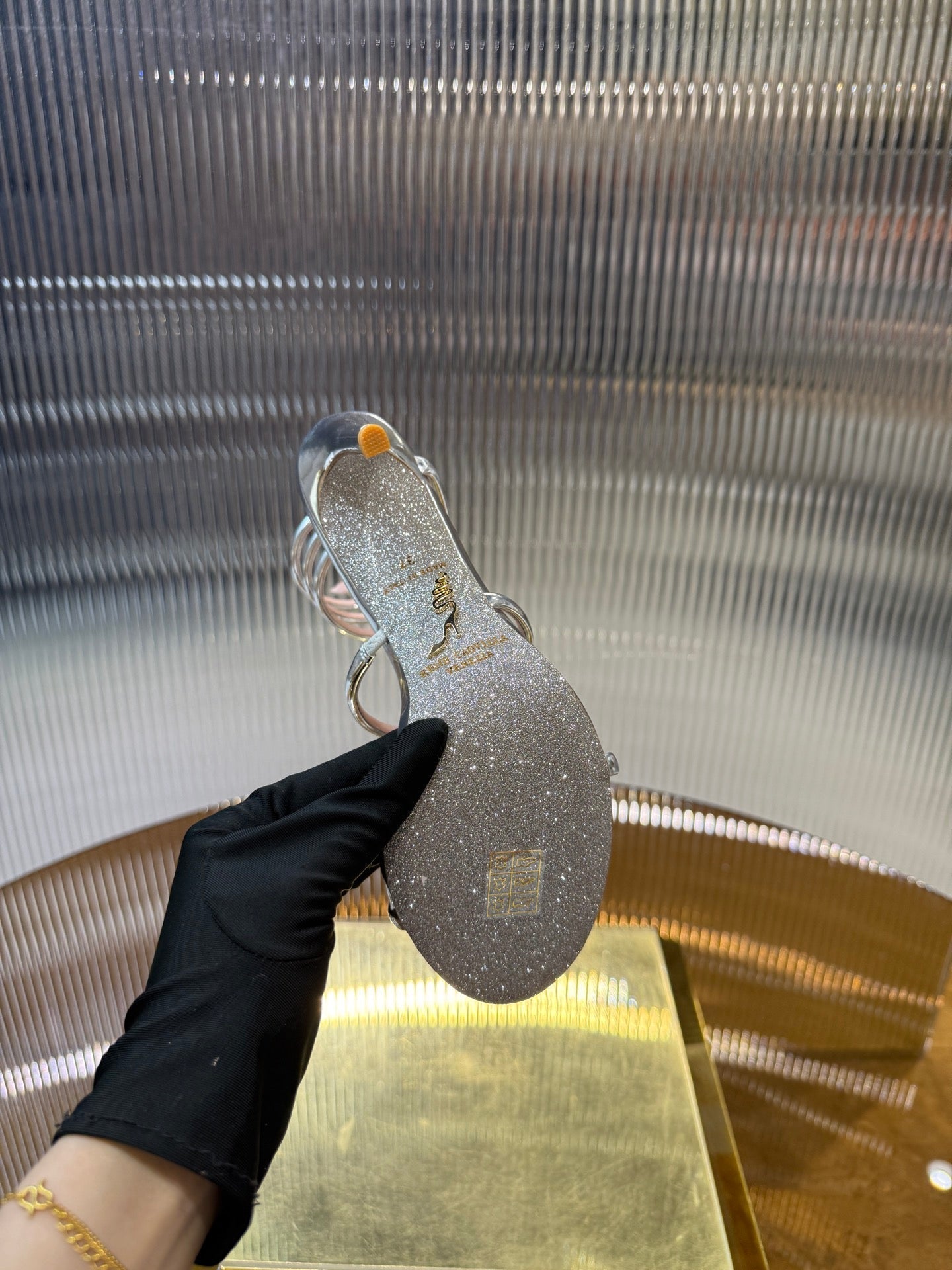 RC 25C Snake-Shaped Sandals 9.5cm Silver Sheepskin 310632